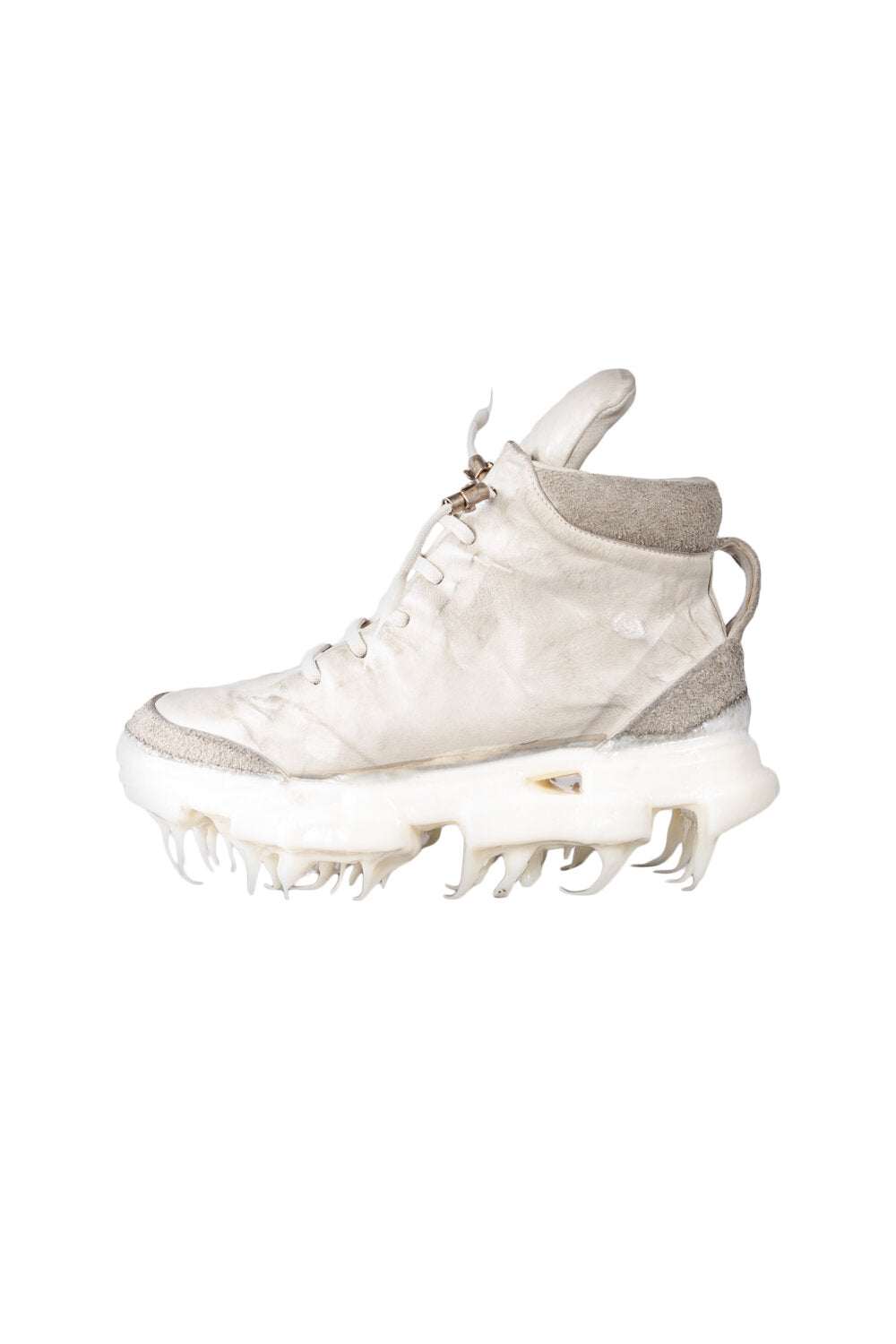 A defining feature of this sneaker is its innovative drip rubber sole, a signature Carol Christian Poell detail that merges functionality with art. This unique sole not only provides traction but also adds a distinctive visual element to the shoe, with its icicle-like formations that appear to "drip" from the bottom.