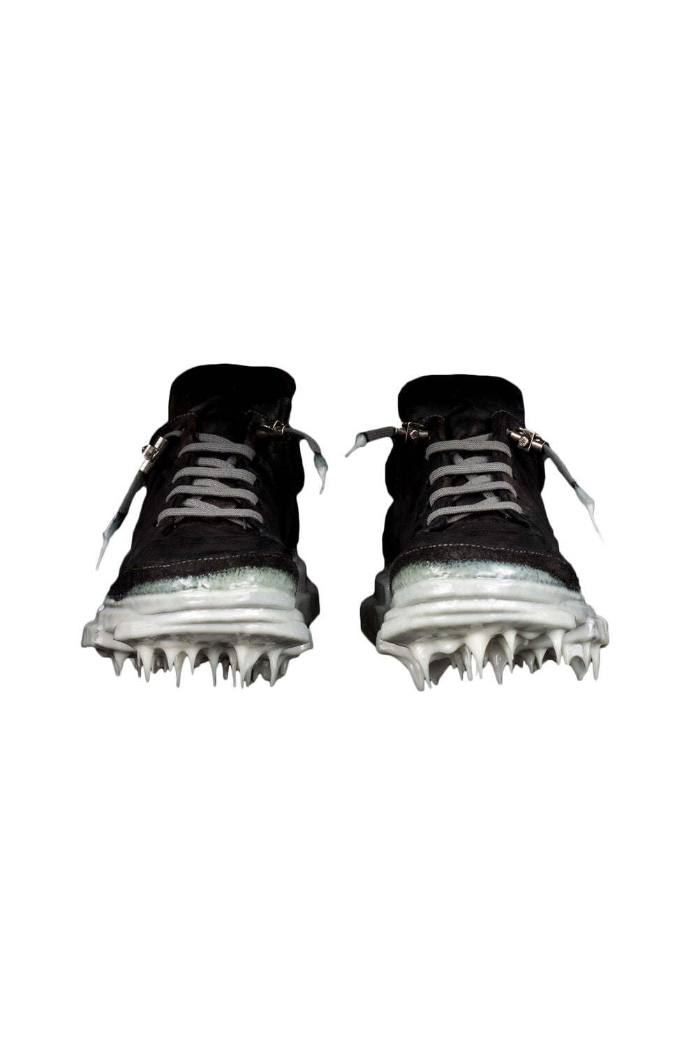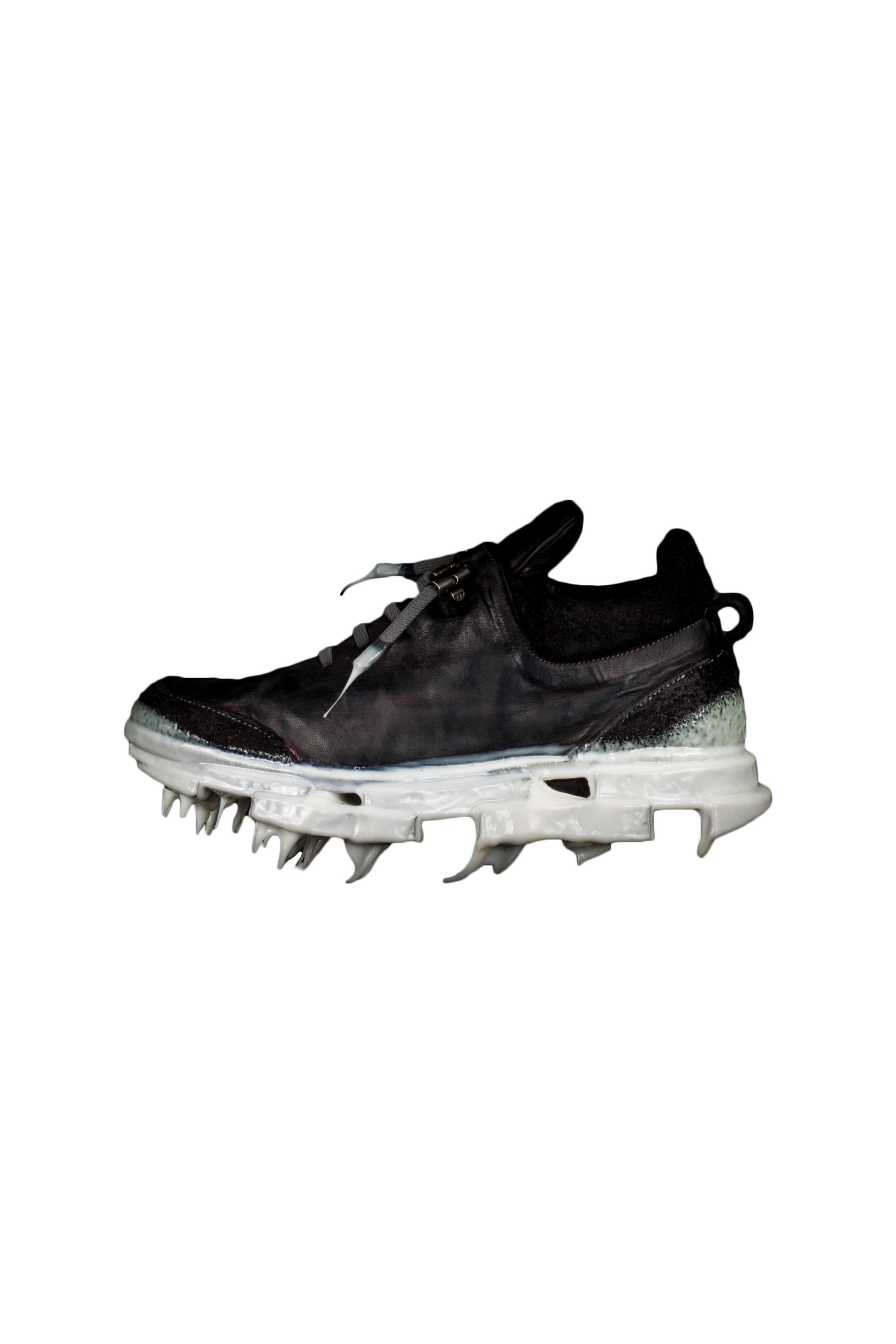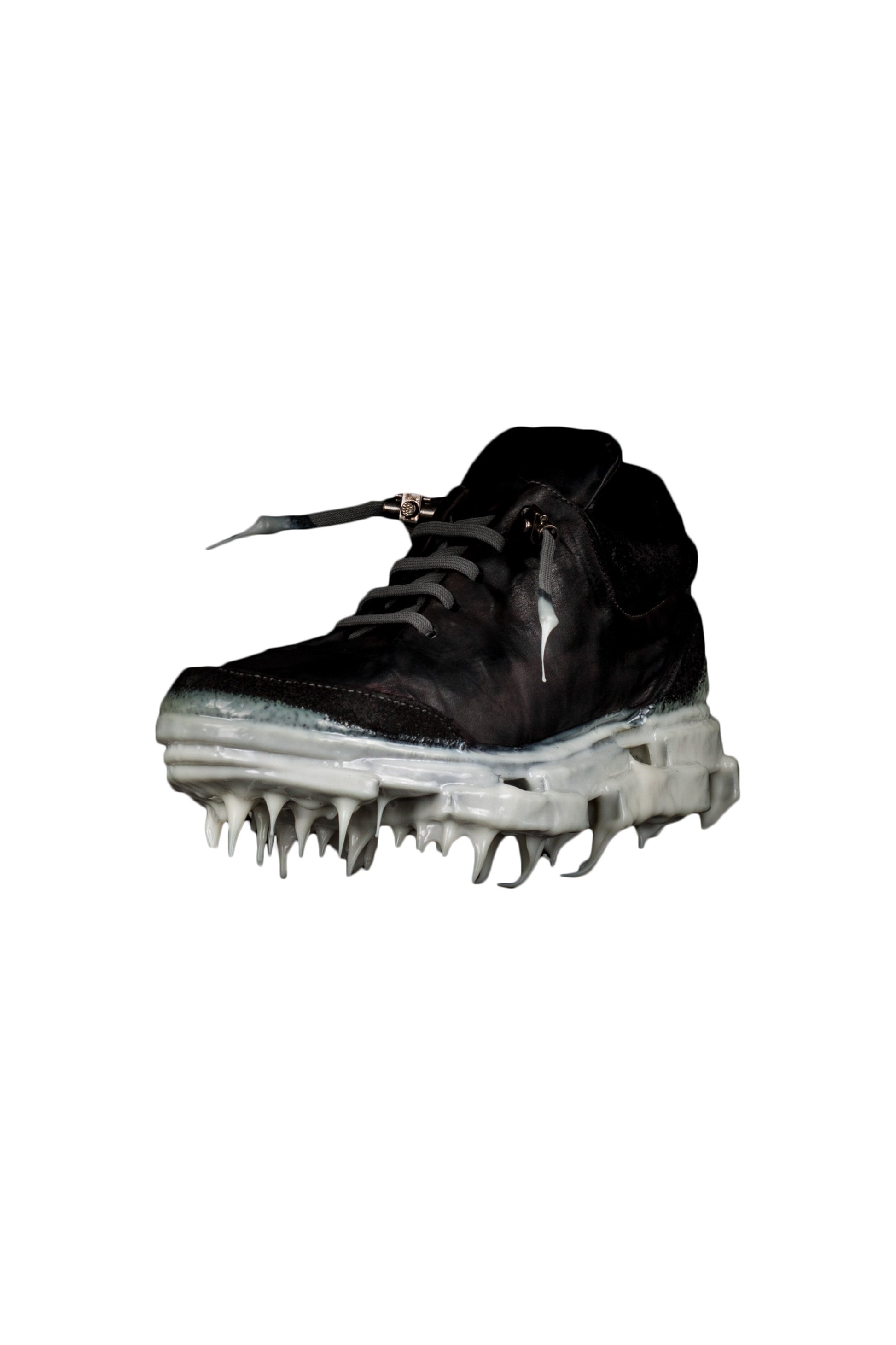 At the heart of the sneaker's design is its iconic drip rubber sole, a hallmark of Carol Christian Poell's innovative approach to footwear. This sole not only sets the sneaker apart visually but also ensures it stands on a foundation of unmatched craftsmanship. The appearance of the sole, resembling icicles in mid-drip, adds an element of dynamic movement to the sneaker's overall aesthetic.
