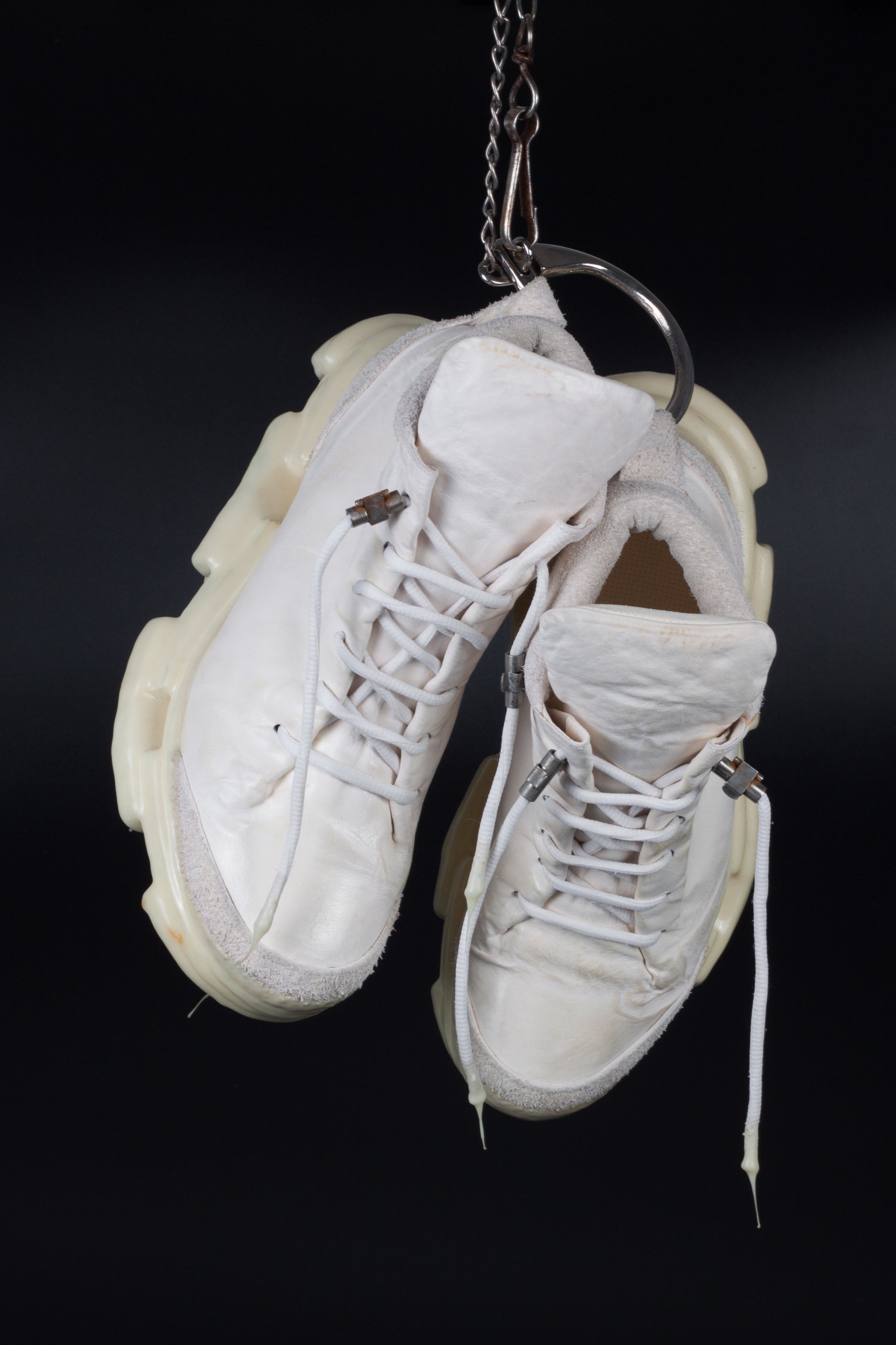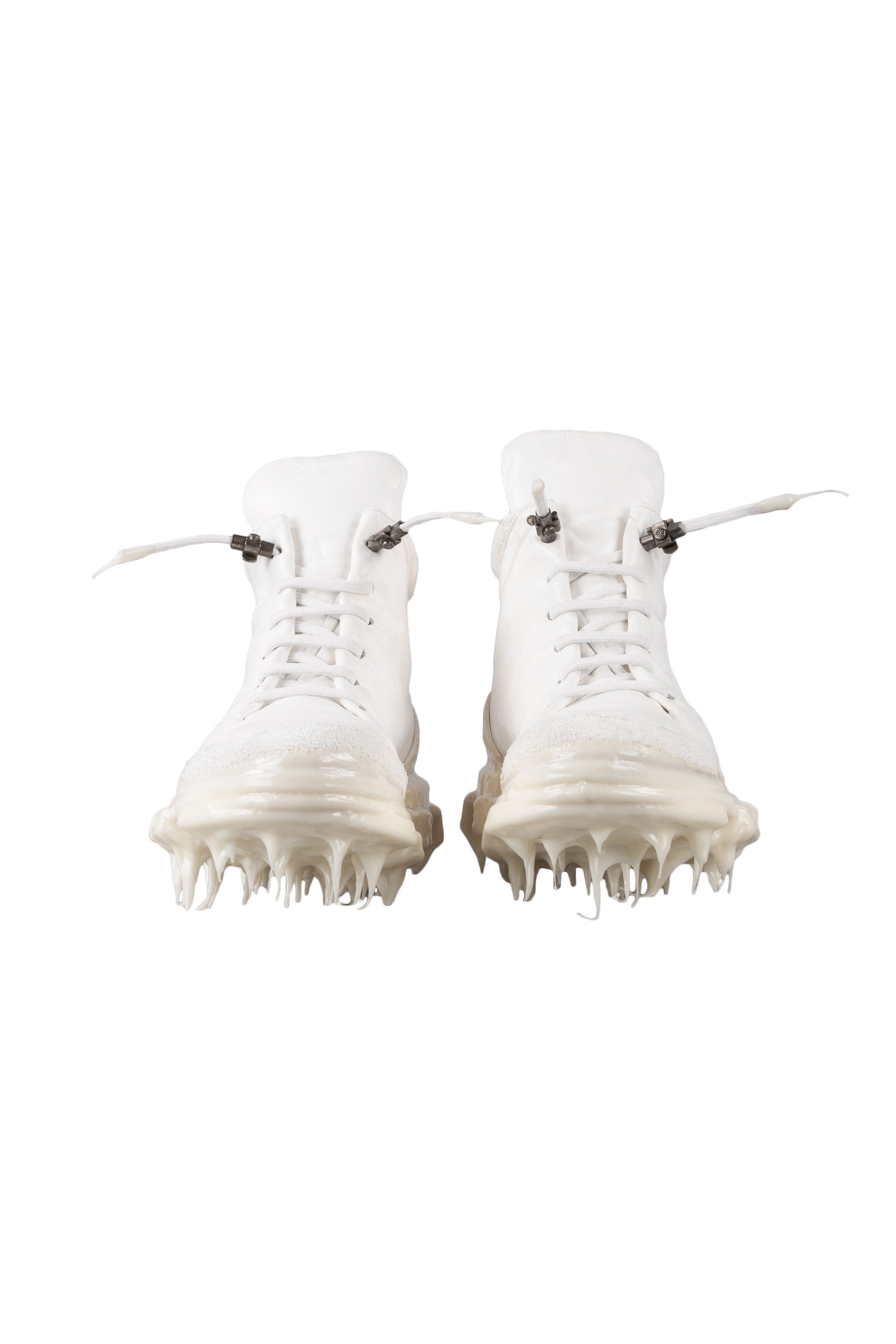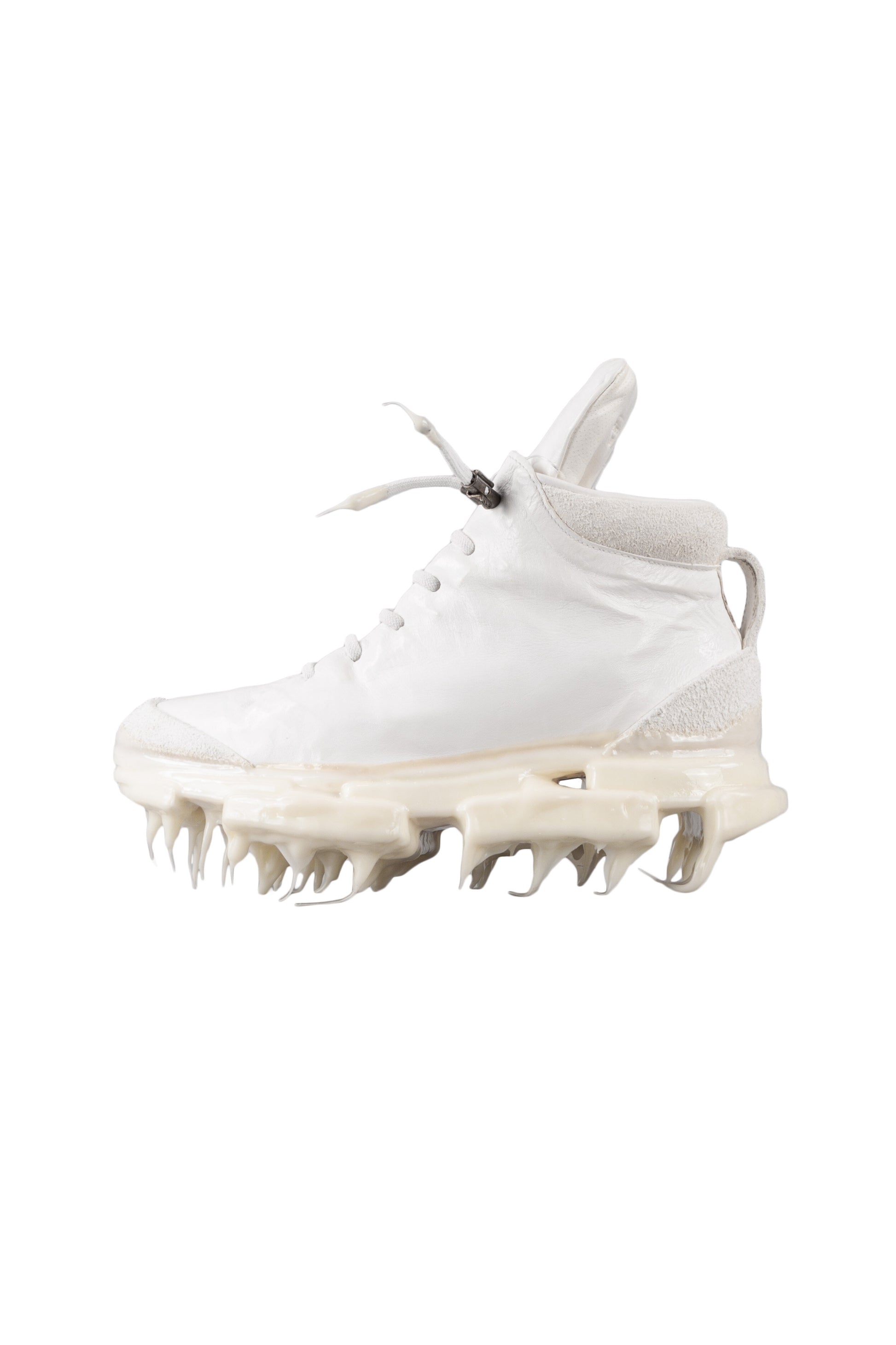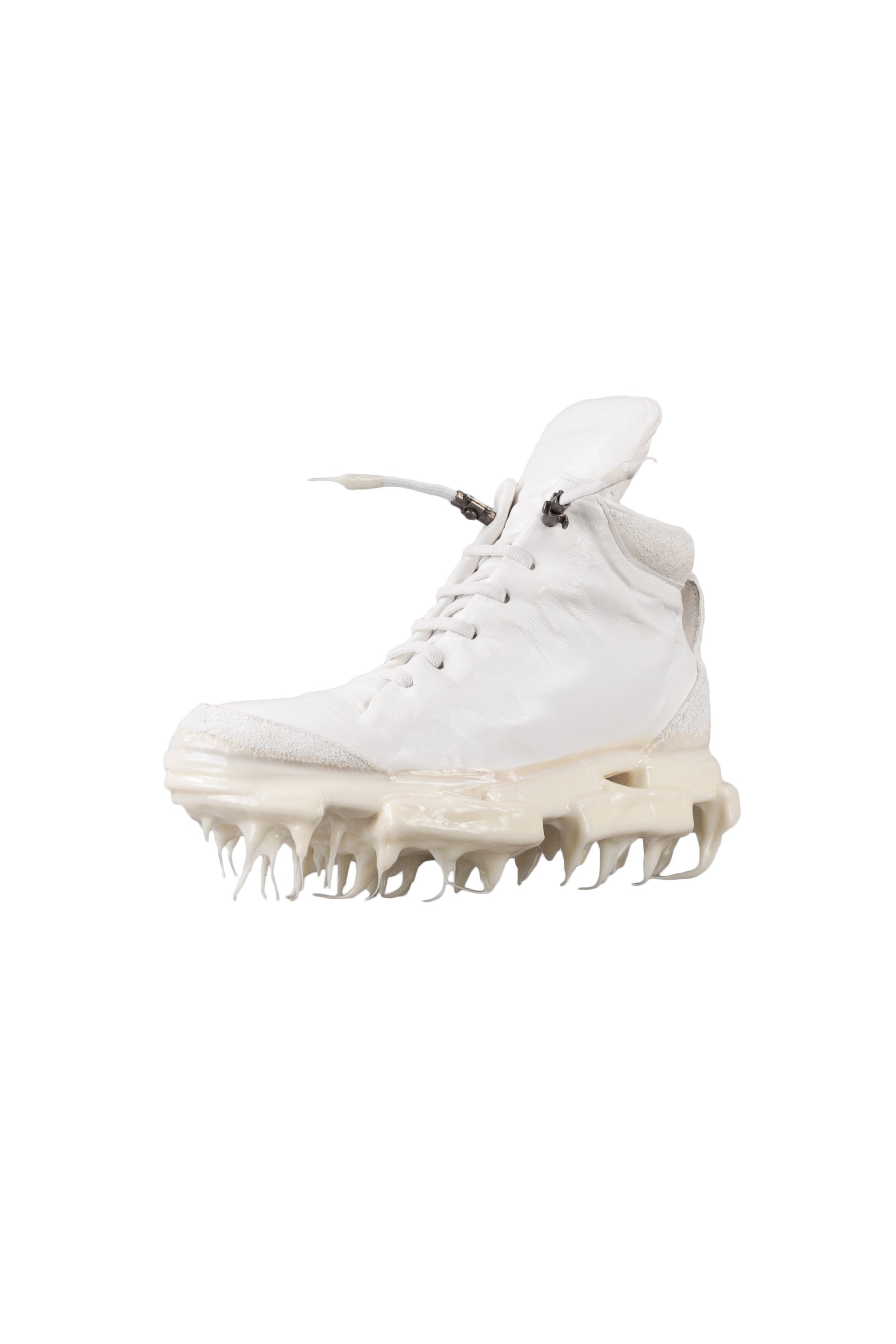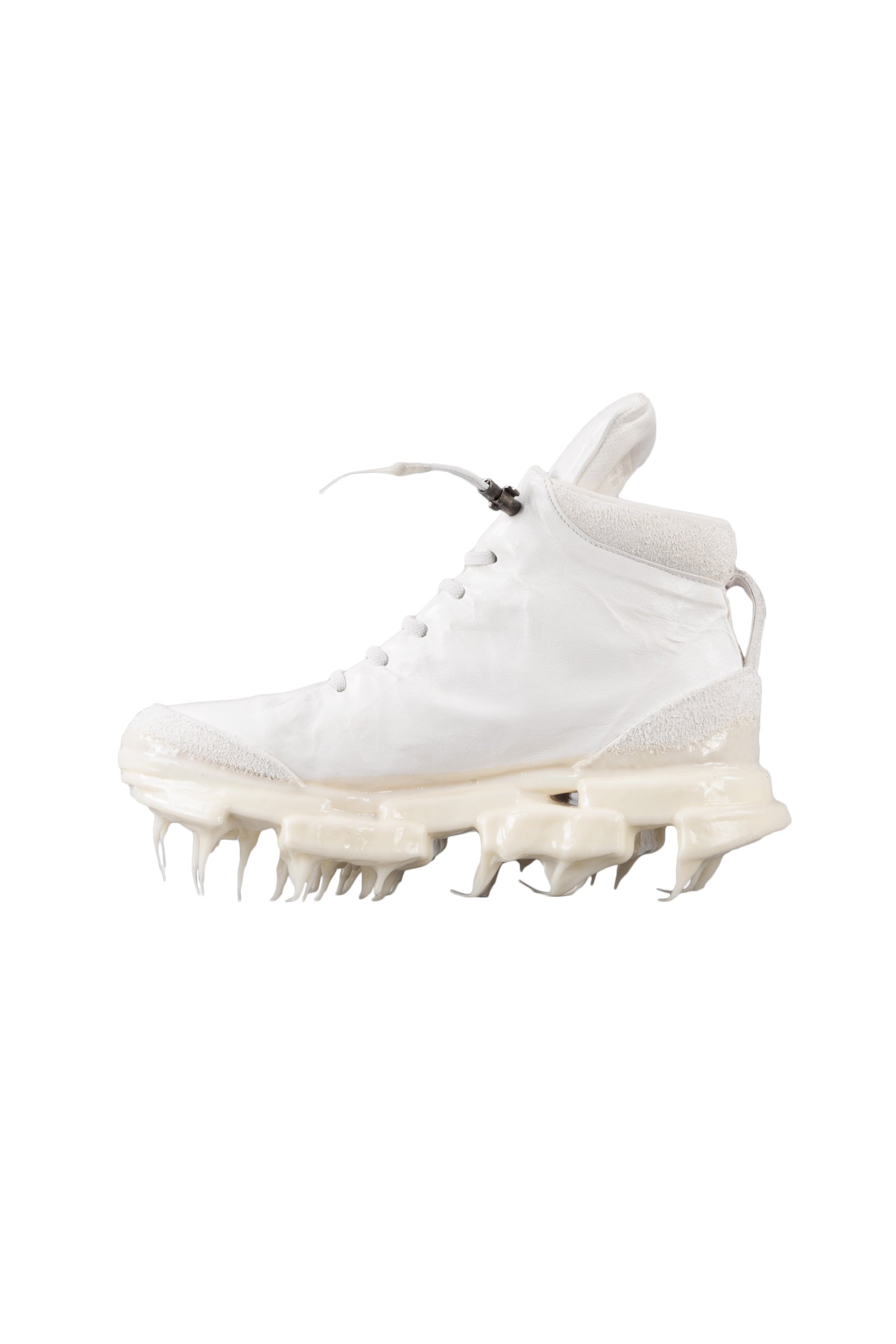 A defining feature of this sneaker is its innovative drip rubber sole, a signature Carol Christian Poell detail that merges functionality with art. This unique sole not only provides traction but also adds a distinctive visual element to the shoe, with its icicle-like formations that appear to "drip" from the bottom.