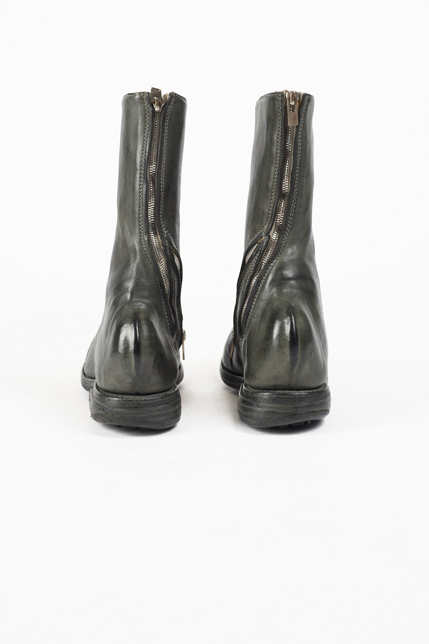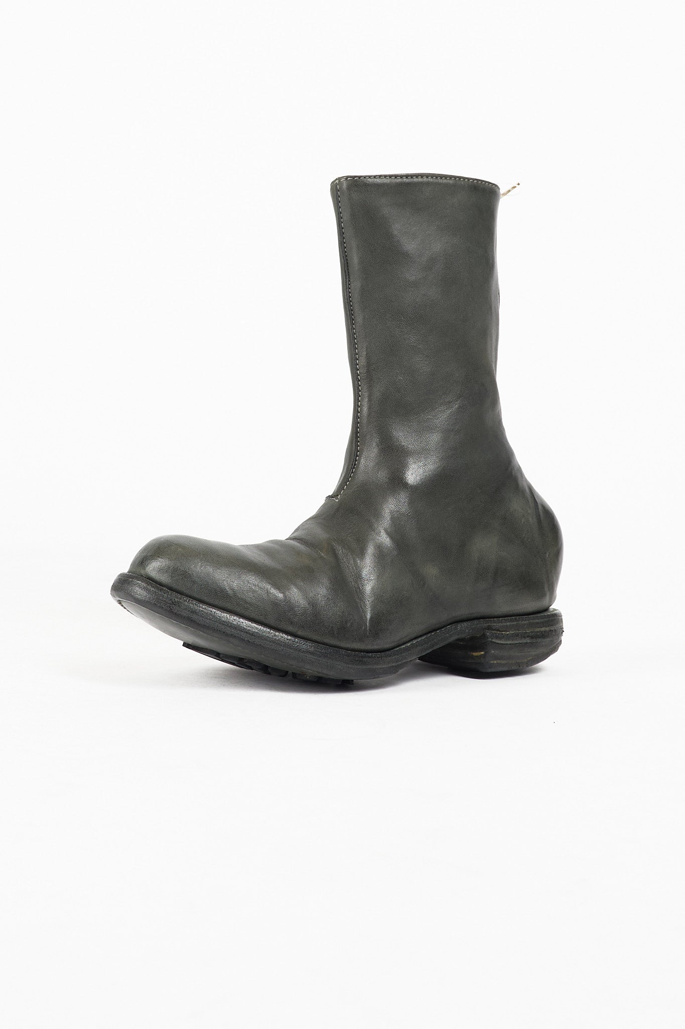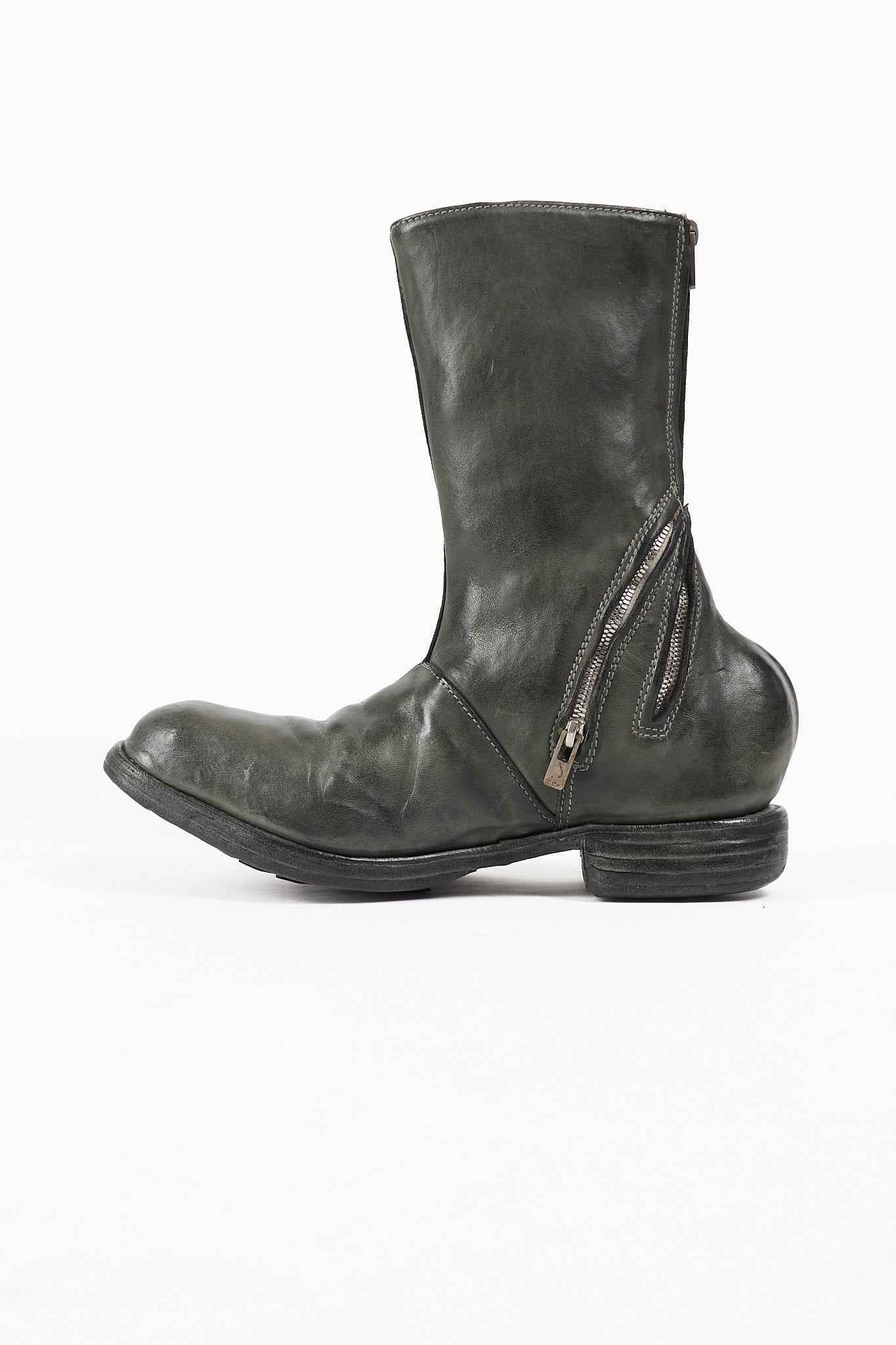 The Object Dyed Goodyear Orthopedic Spur-Biter Boot, model AM/2756P-IN, is crafted from CORSS-PTC horse leather, offering a unique blend of texture and feel. Featuring a distinctive titanium orthopaedic inserts design with a rugged spur-biter sole, this grey boot exemplifies Carol Christian Poell’s avant-garde approach to footwear.