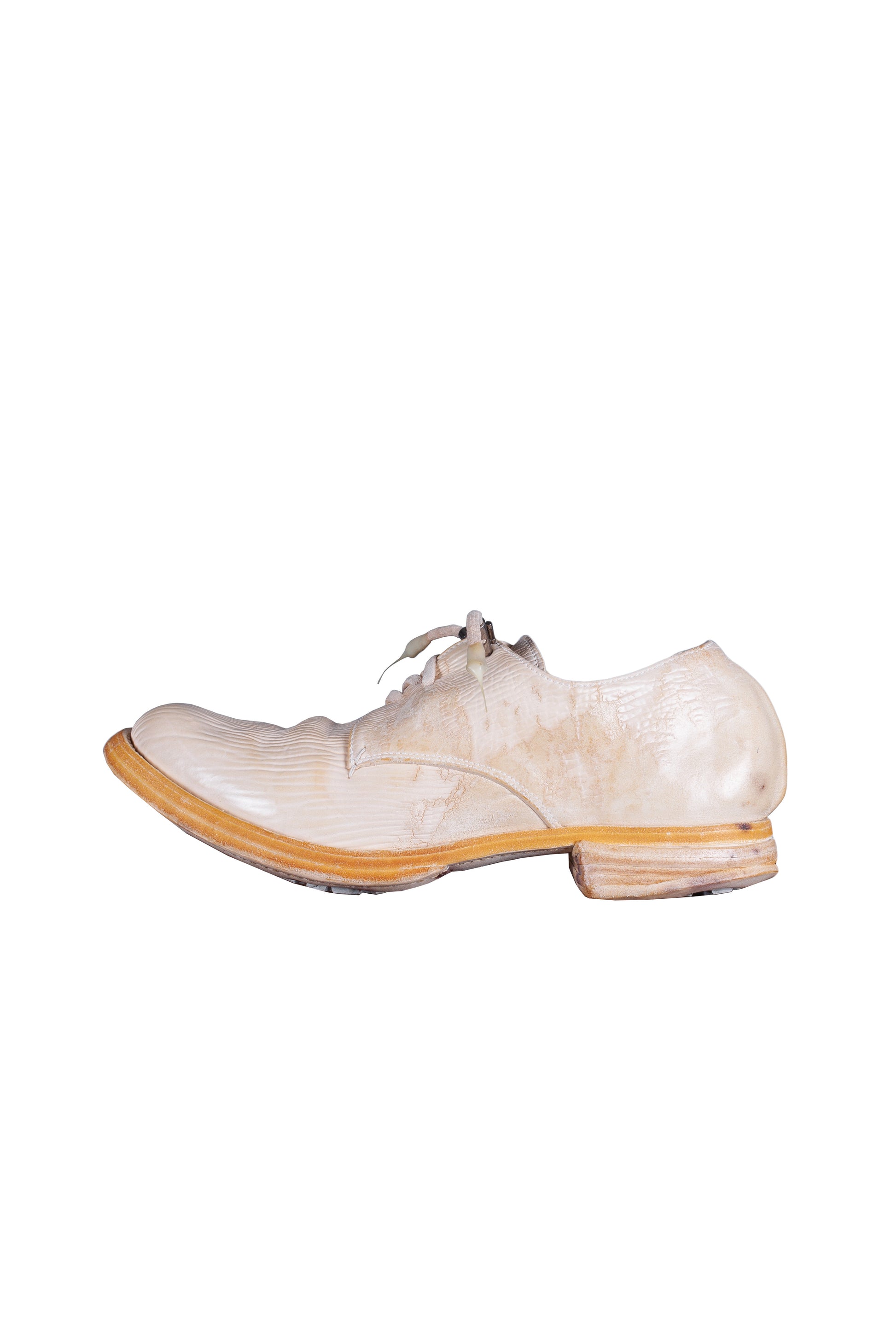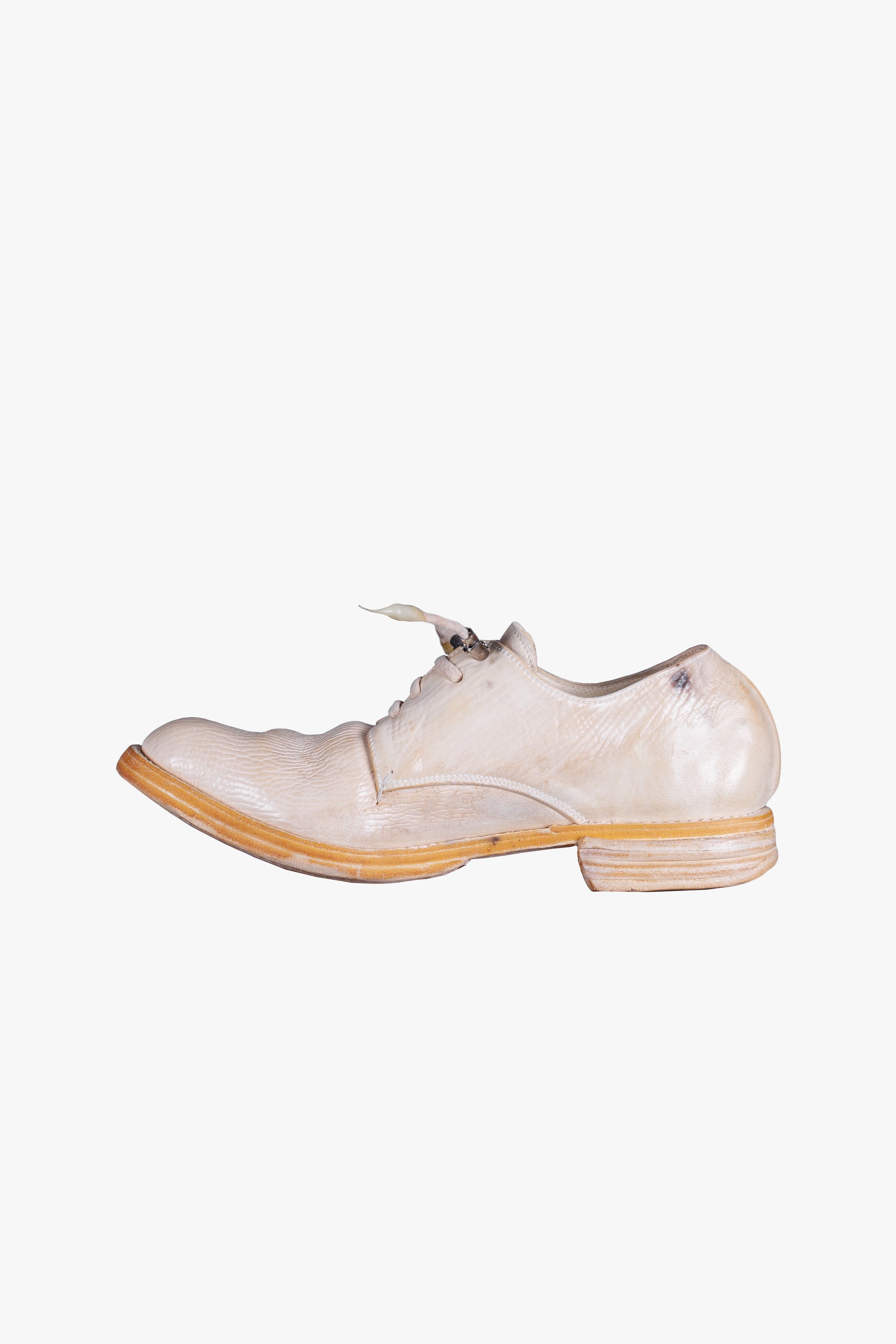 The AM/2755P-IN model Object Dyed Goodyear Officer shoe embodies Carol Christian Poell's vision of merging the avant-garde with artisanal craftsmanship. This shoe is crafted from CUBBS-PTC in 100% horse leather, in an off white hue (Colour: 03).