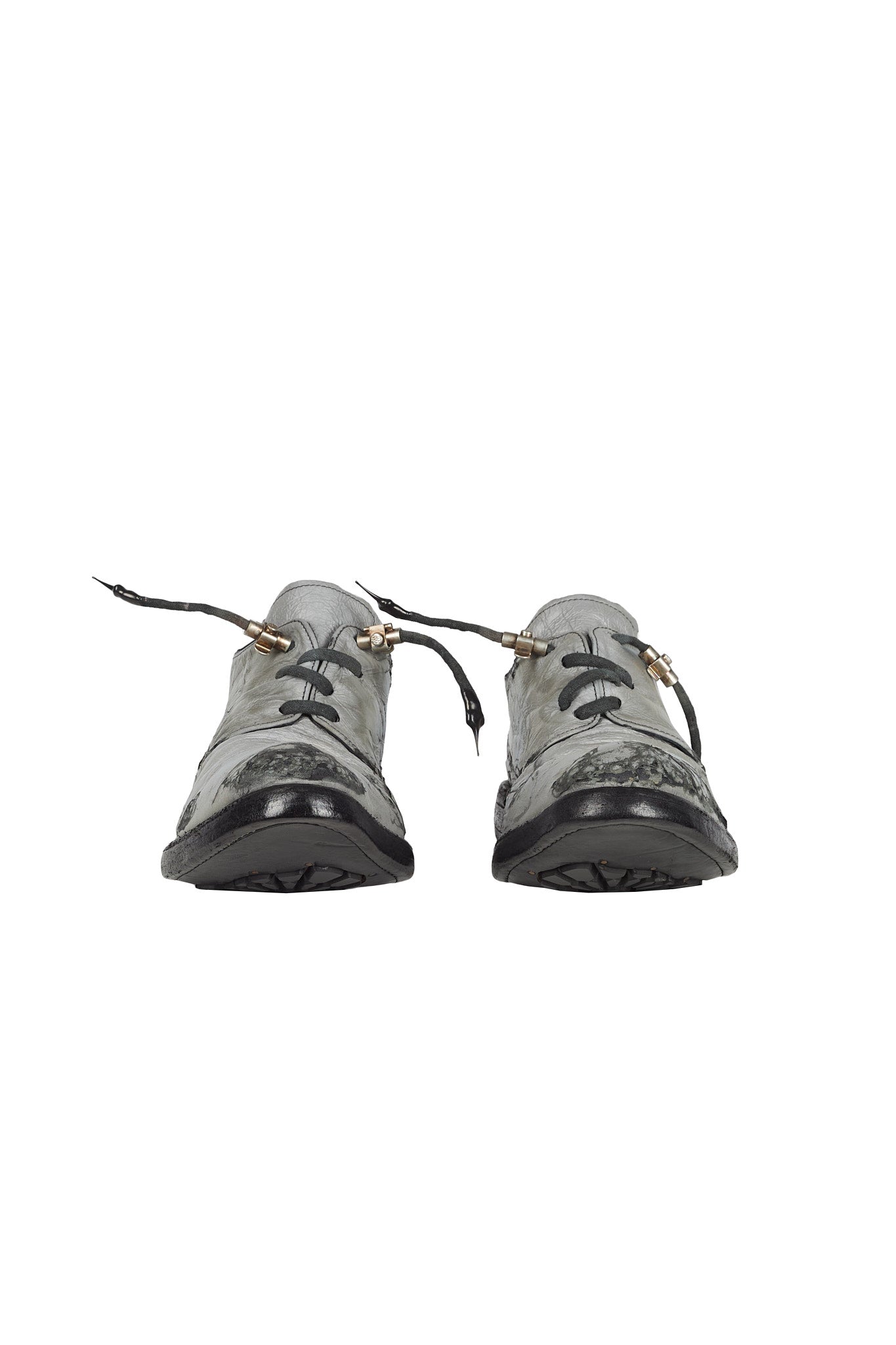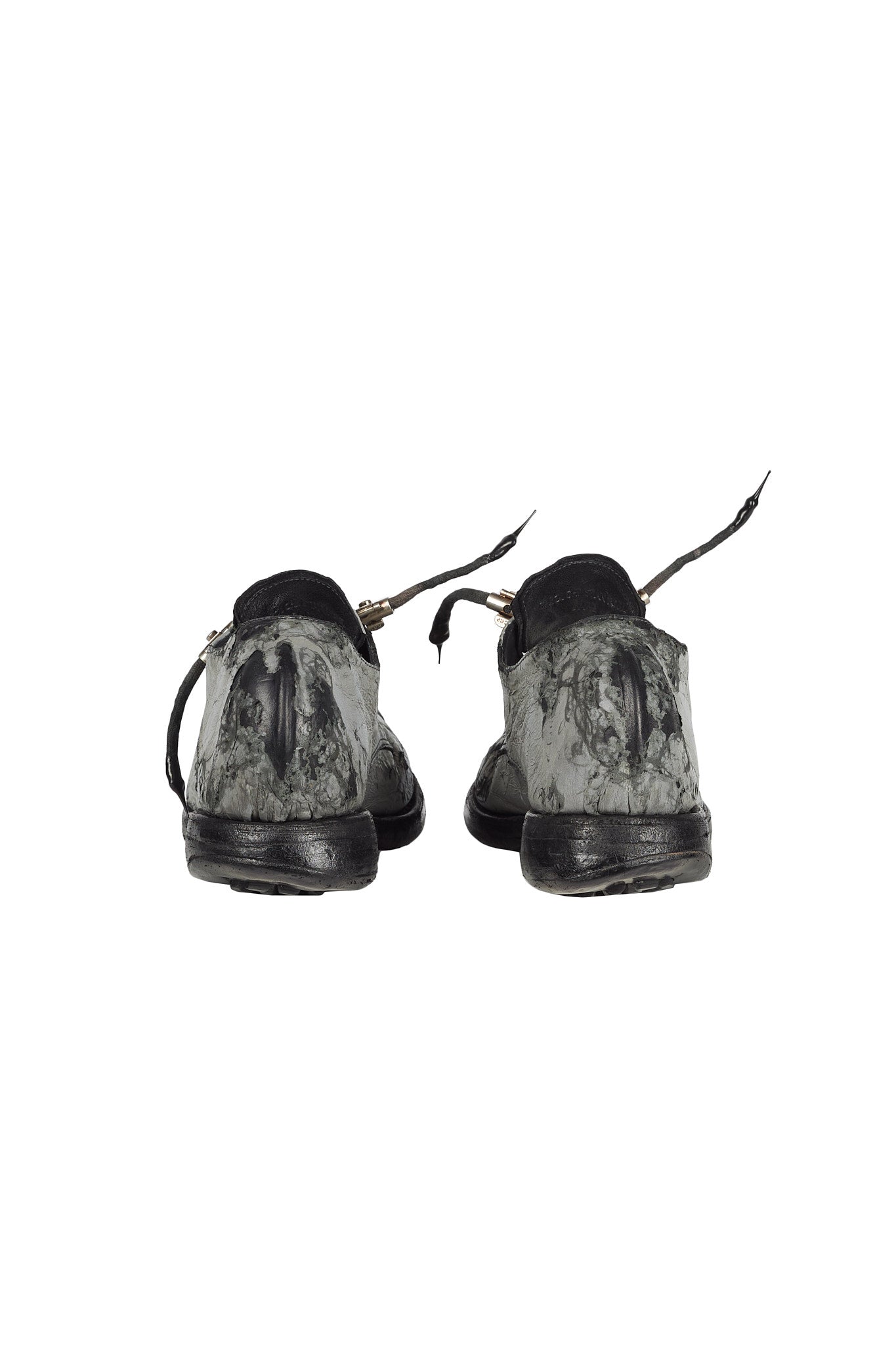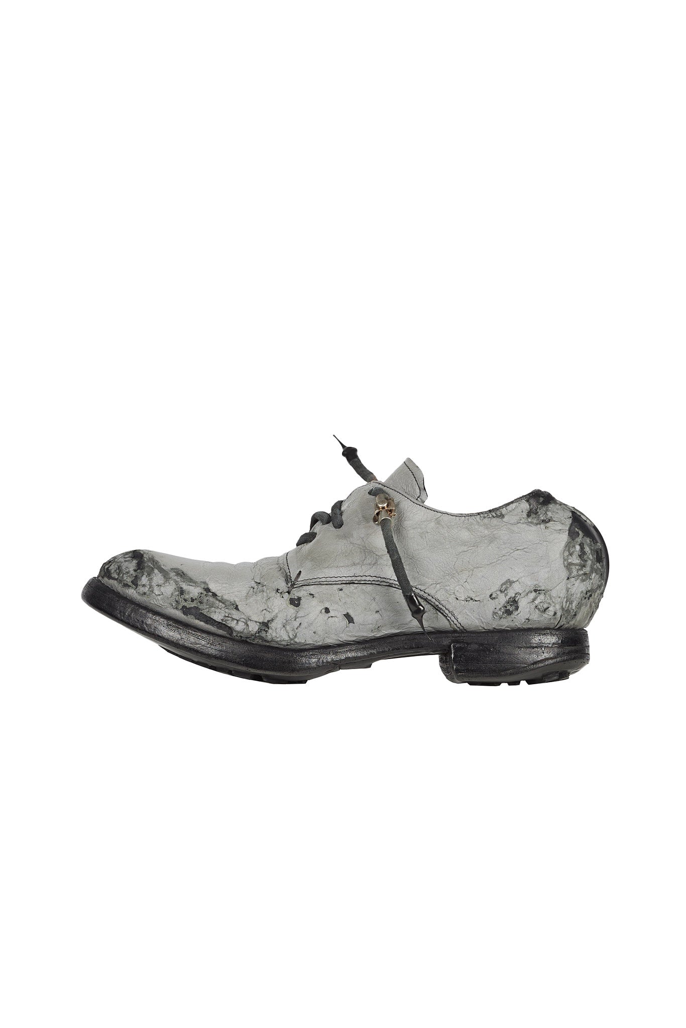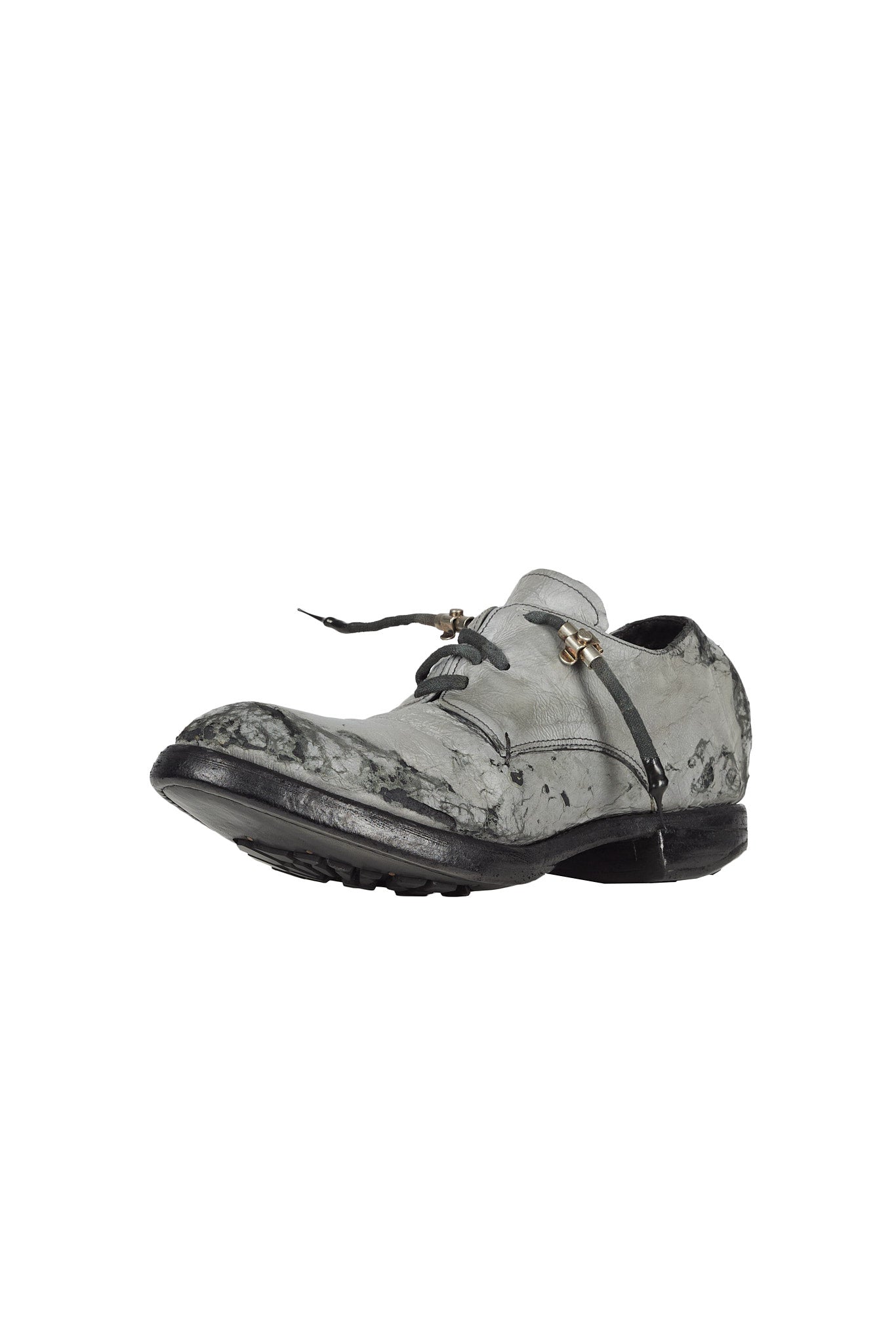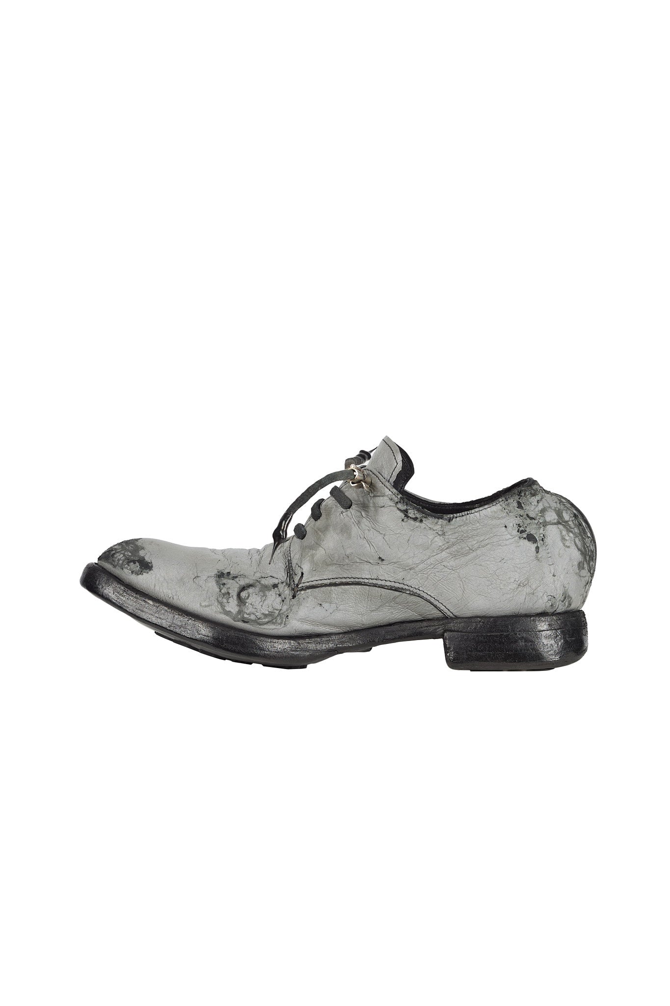 The AM/2755SP-IN model Object Dyed Goodyear Officer shoe embodies Carol Christian Poell's vision of merging the avant-garde with artisanal craftsmanship. This shoe is crafted from XDERMA-PTC which contains glass to produce a reflective effect when exposed to light.