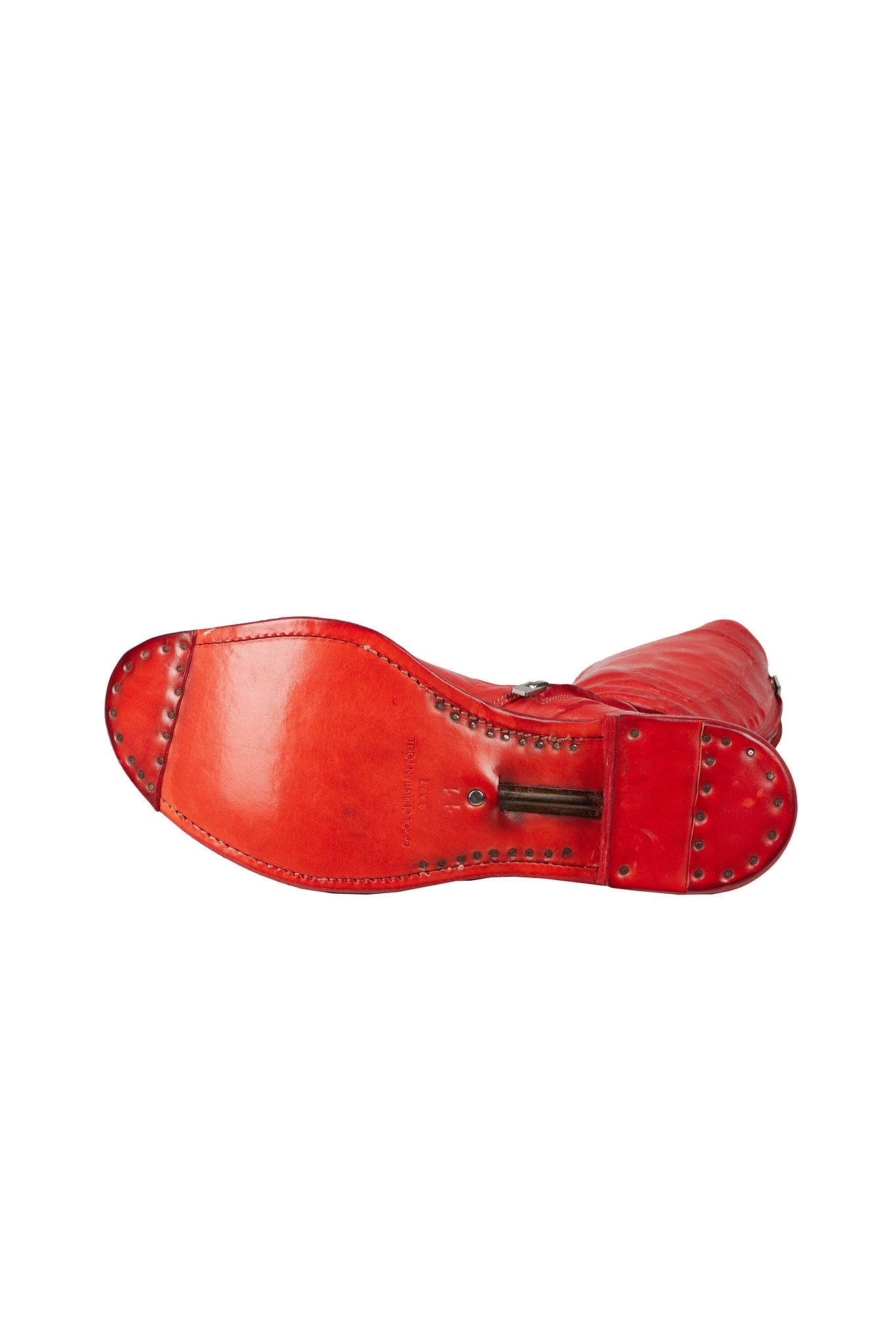 The Object Dyed Lined One Piece Prosthetic Boot, Model: AM/2687P, showcases the pinnacle of avant-garde footwear design. Crafted from ROOMS-PTC, this piece marries the unconventional beauty of prosthetic detailing with the timeless appeal of expert leather craftsmanship.