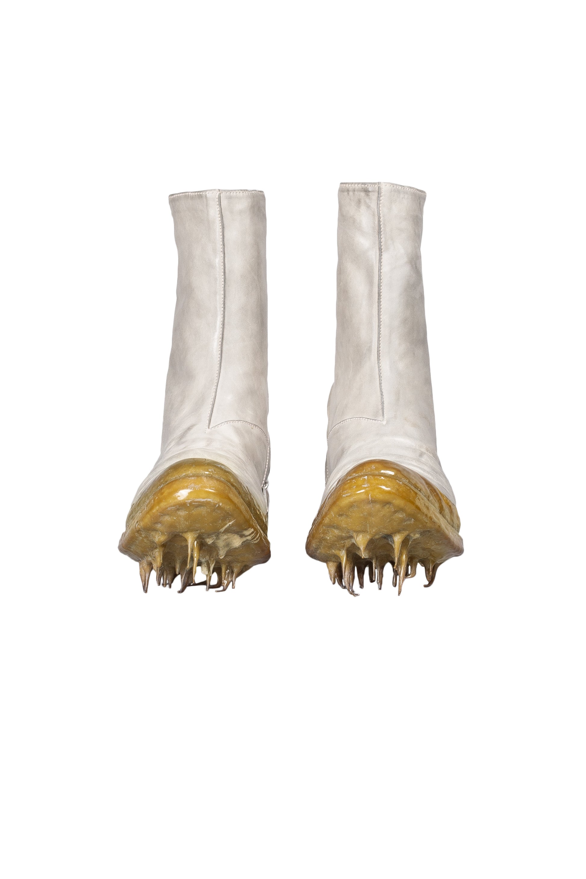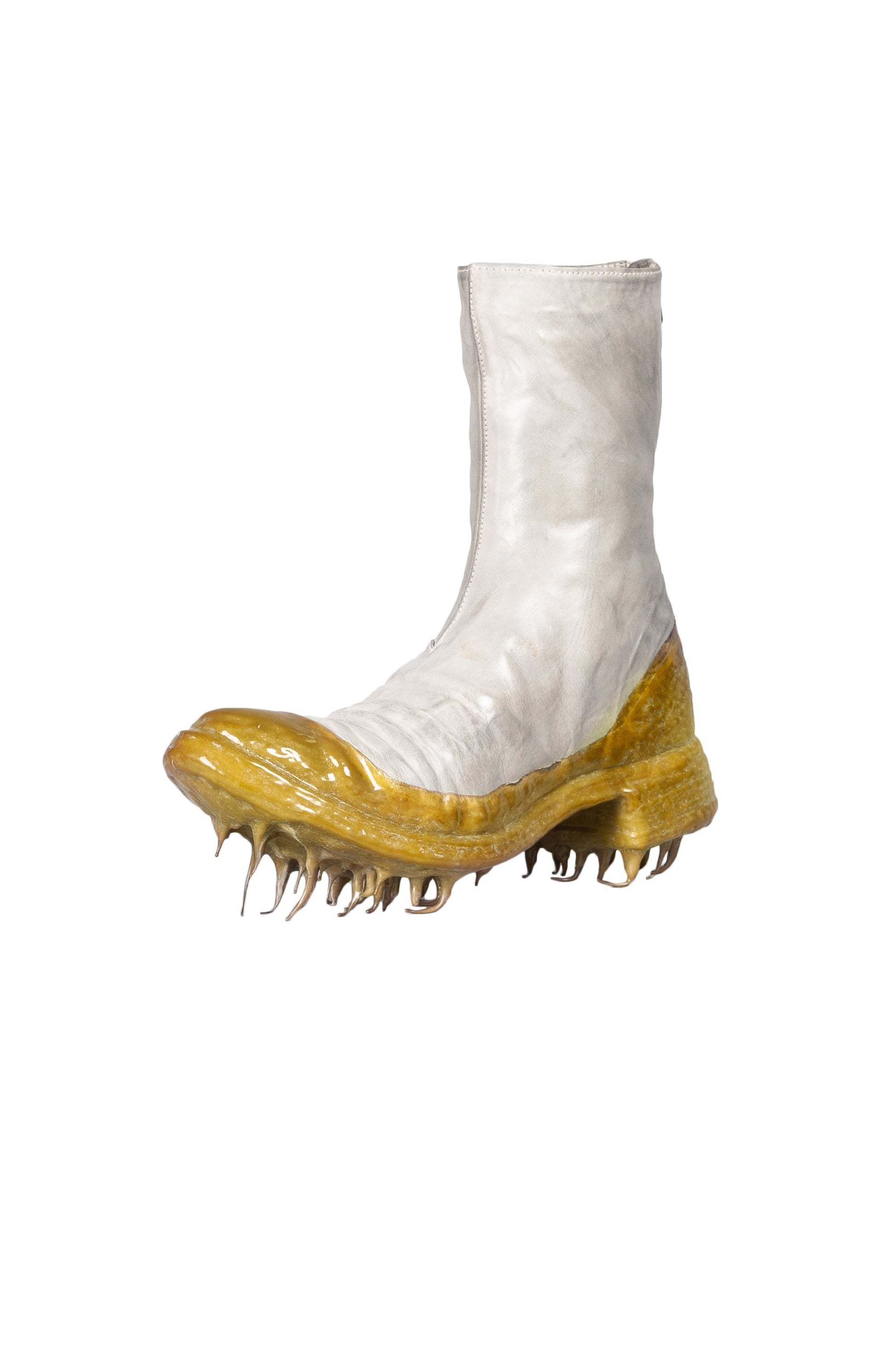 The AM/2601LR model Object Dyed Goodyear boot embodies Carol Christian Poell's vision of utilising artisanal craftsmanship to create avant-garde pieces. This boot is crafted from CORS-PTC in 100% horse leather, in grey (Colour: 33).
