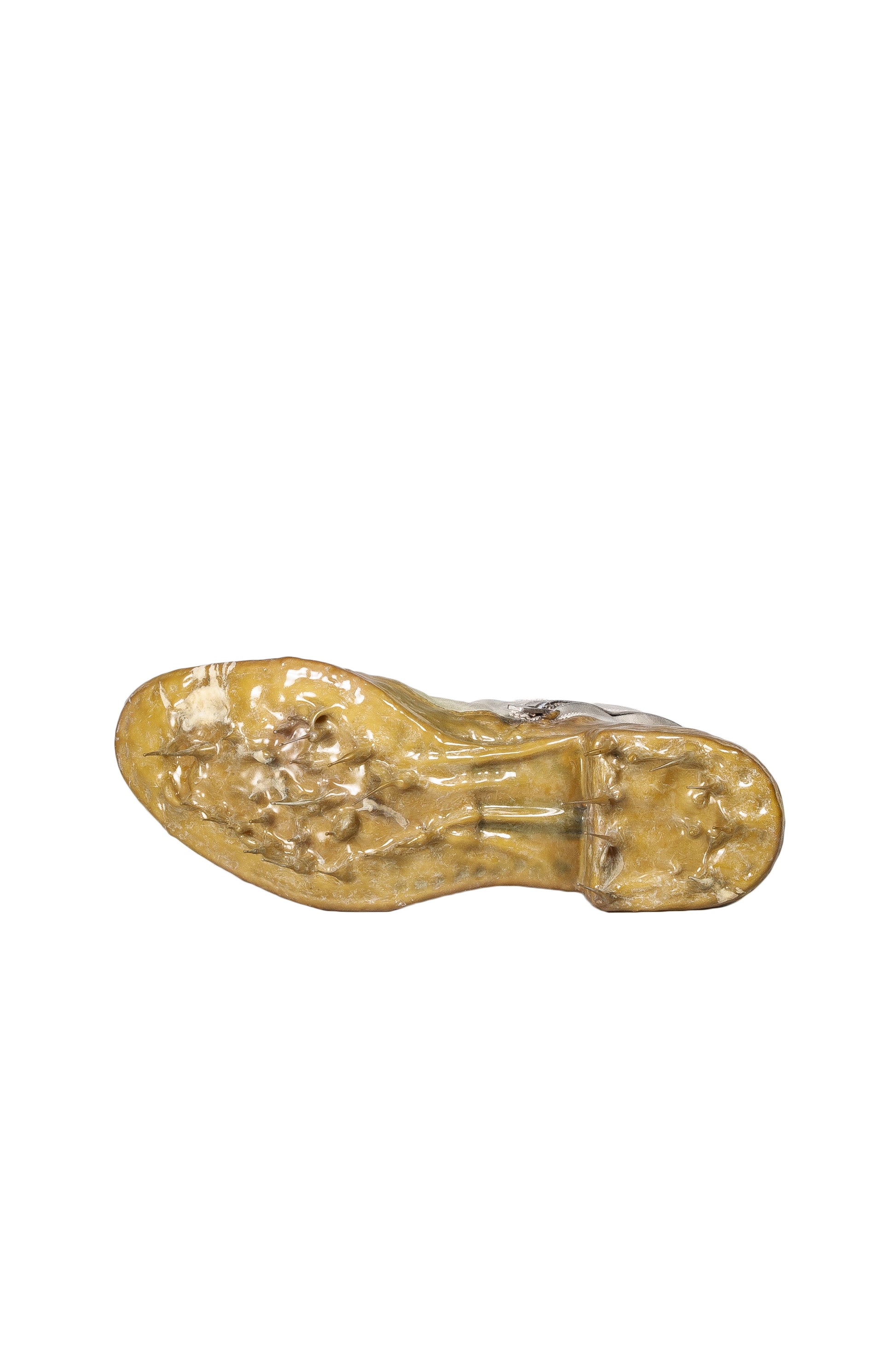 The boot undergoes an object dyeing process, highlighting the natural grain and variation in the colour of the horse leather - resulting in a unique outcome for each individual piece. Signature diagonal zips and a contrasting green dripped rubber sole highlight the individuality of this Carol Christian Poell Goodyear welted boot.