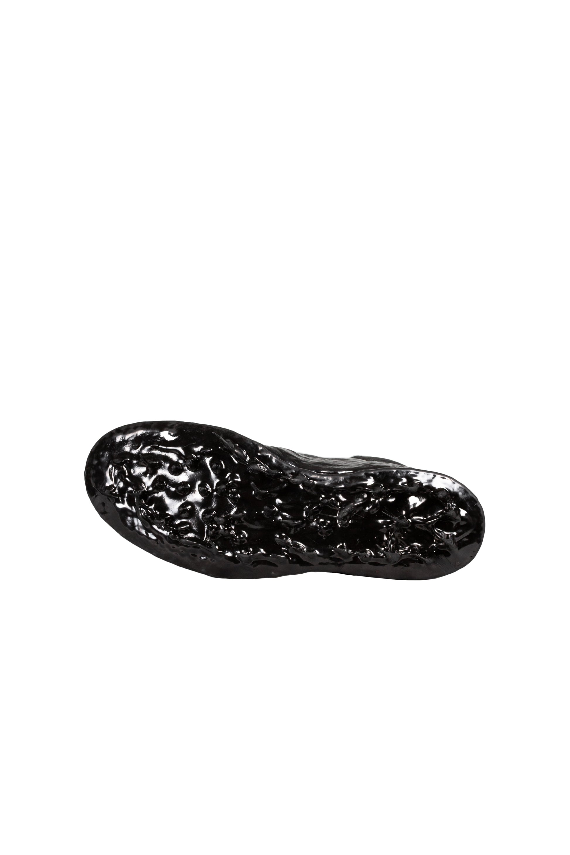 The sneaker utilises seamless construction to shape a smooth and continuous leather upper. Featuring Poell's iconic dripped rubber sole, the sneaker is object dyed to produce a rich and varied black hue. The object dyeing process imparts individual character into each piece, illustrating Carol Christian Poell's distinctive fusing of the avant-garde with artisanal craftsmanship.