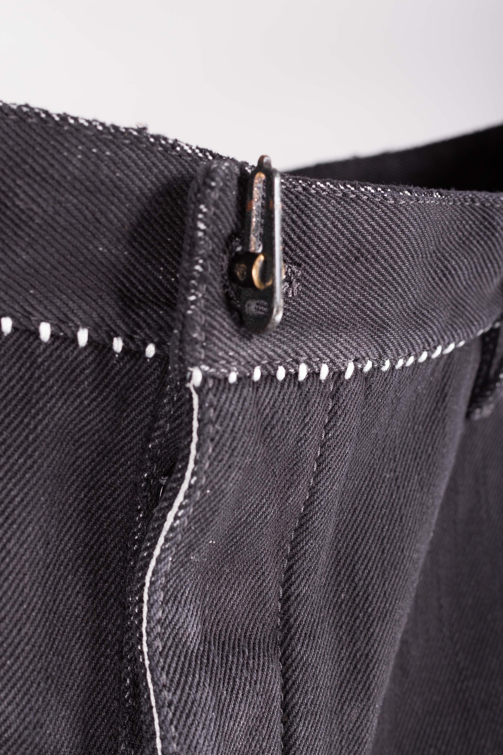 The Overlock Dead End Short Apron Jeans, model JM/2627, embodies Carol Christian Poell's reinterpretation of classic tailoring. Fashioned from KIT-BW, this denim short is presented in black with contrasting white overlock stitching. The oxidised lock fastening provides distinctive detailing to the garment's apron silhouette.