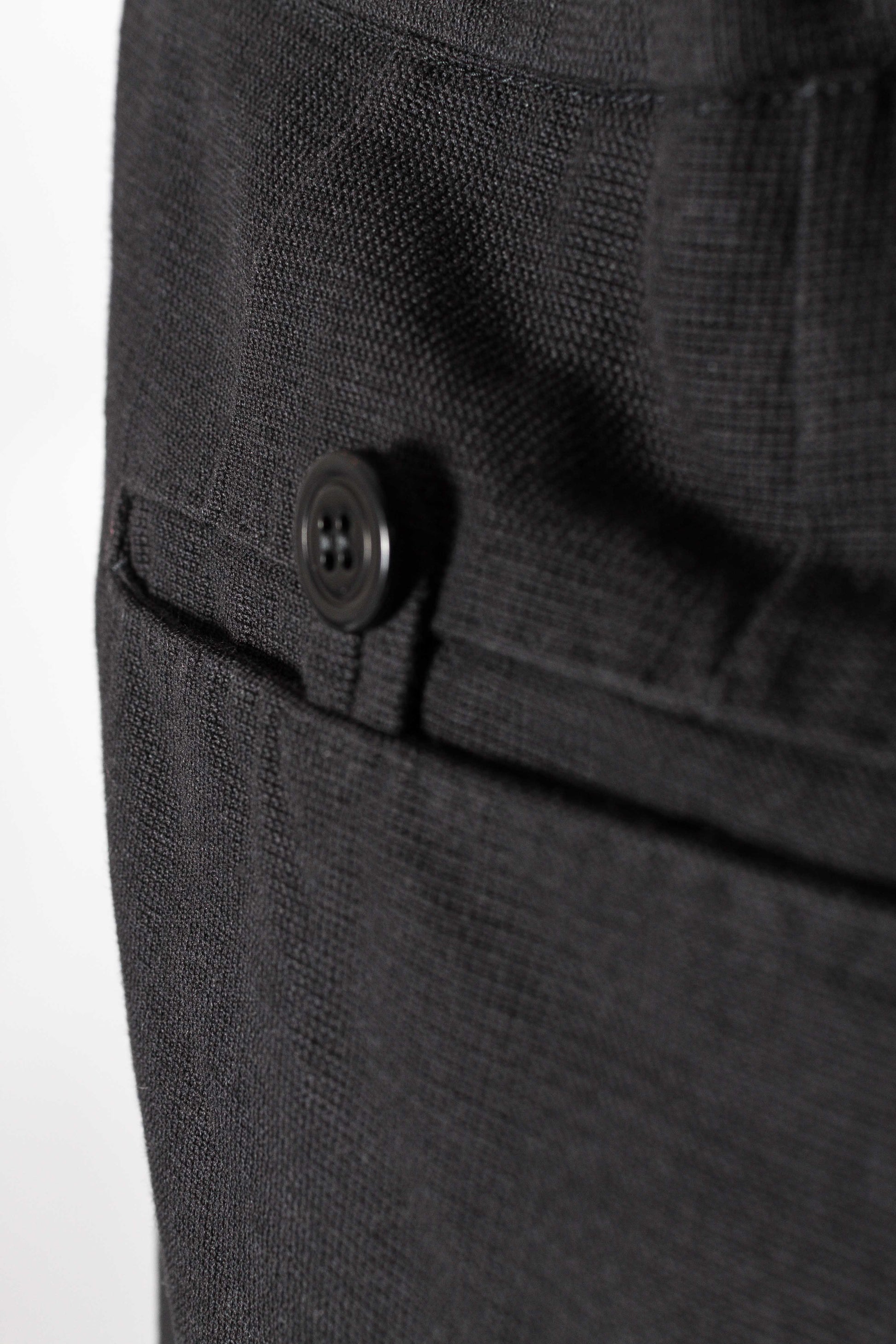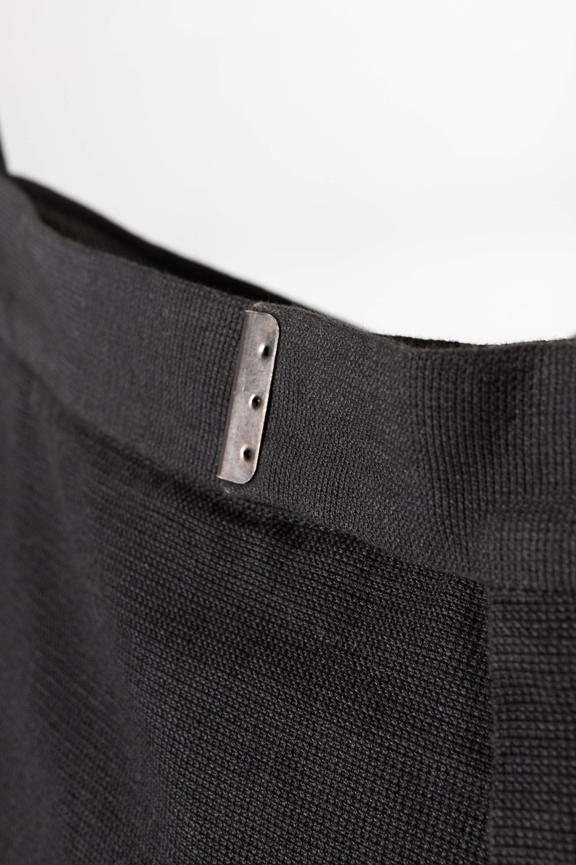 The Stirred Chain Seam Long Crotch Knee Trousers, model PM/2706-IN, embodies Carol Christian Poell's reinterpretation of classic tailoring. Fashioned from the innovative NUBEL fabric, this knee length short is presented in black (Colour: 10), with an elasticated back. The signature chain seam construction provides distinctive detailing to the garment's long dropped-crotch silhouette.
