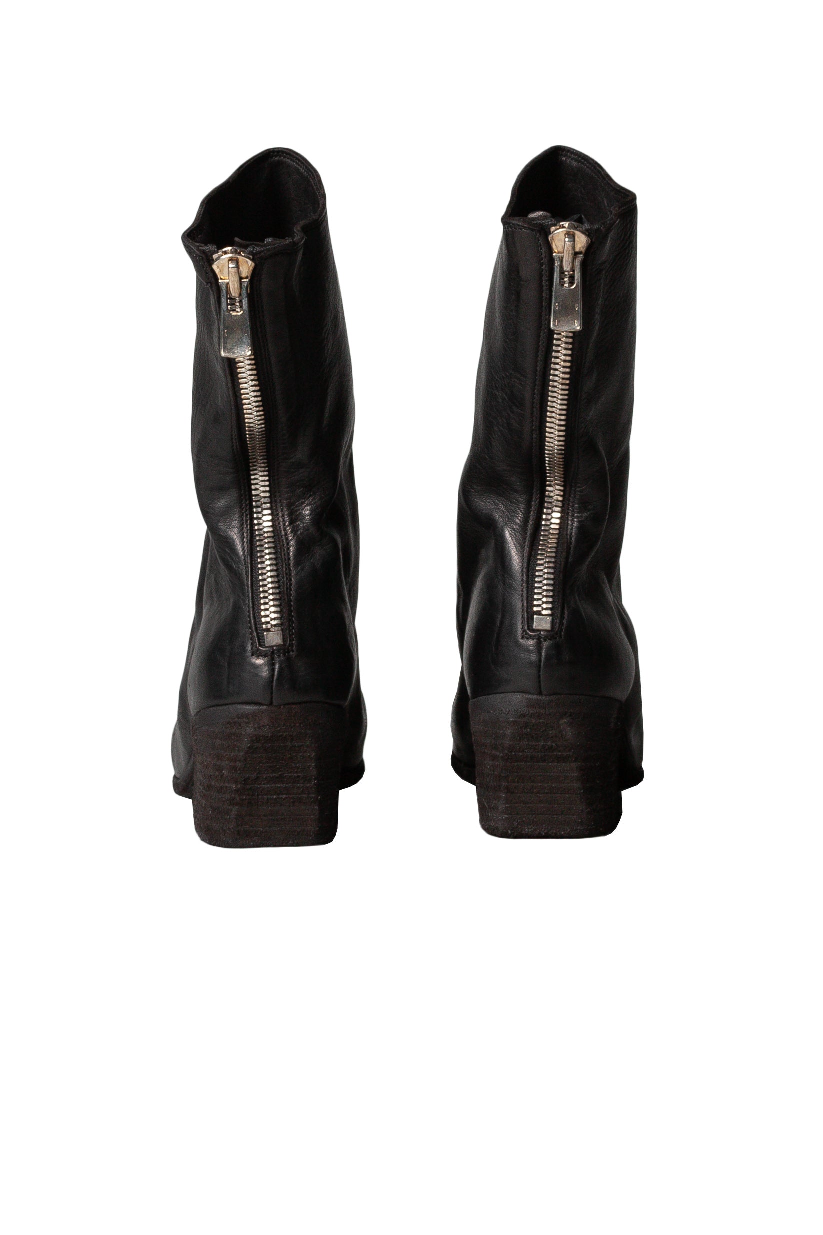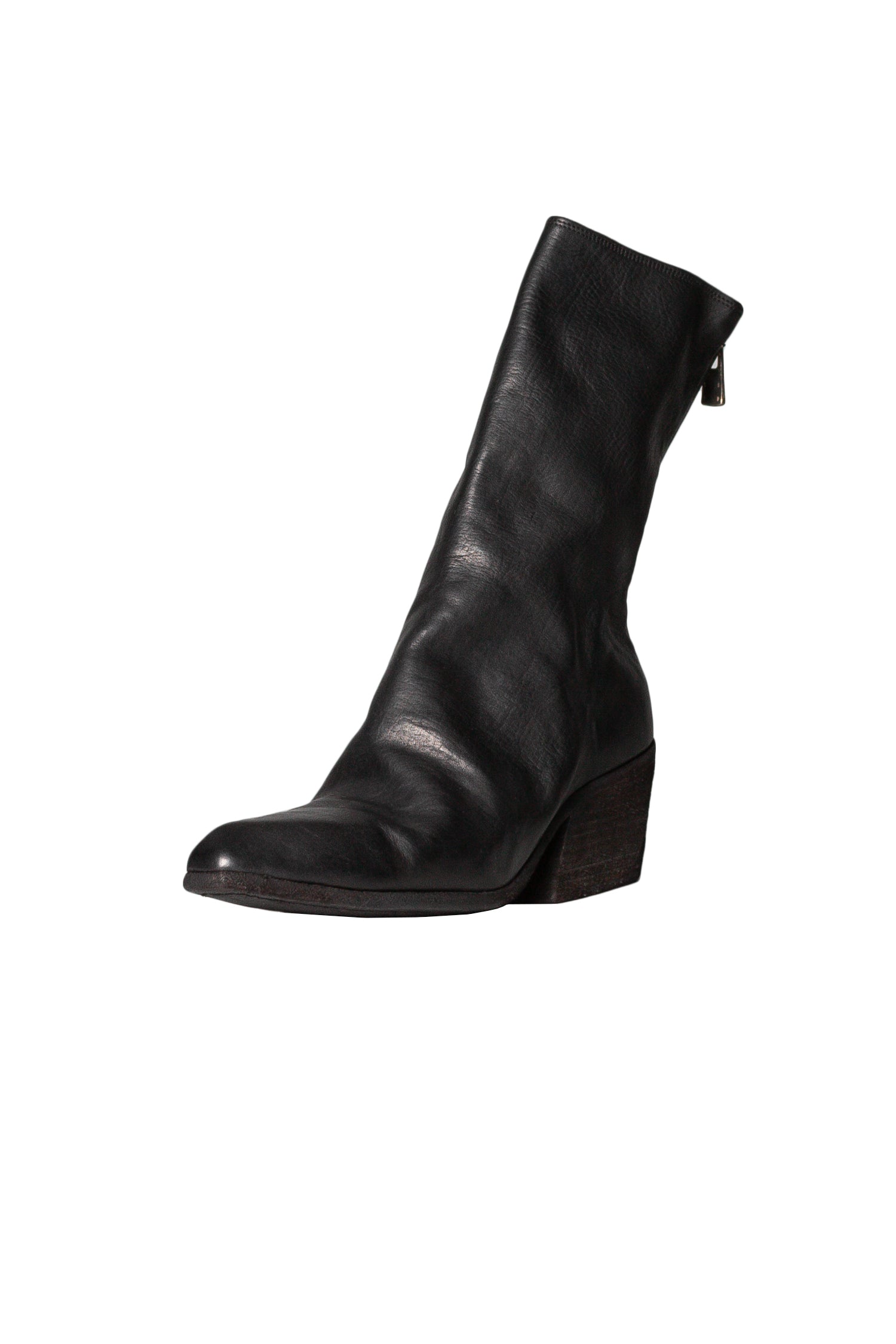 The GUIDI Back Zip Boot in Black epitomises the brand's commitment to fusing timeless Italian craftsmanship with contemporary design sensibilities. Handcrafted from 100% full-grain horse leather, these boots showcase GUIDI's expertise in leather working and dyeing. The black color, achieved through a meticulous object-dyeing process, highlights the natural texture and characteristics of the horse leather, enhancing the boot's luxurious appeal. The design features a practical back zip closure, a pointed toe, and a low heel, blending functionality with an understated elegance. Made in Italy, this boot is a true representation of GUIDI's dedication to quality.