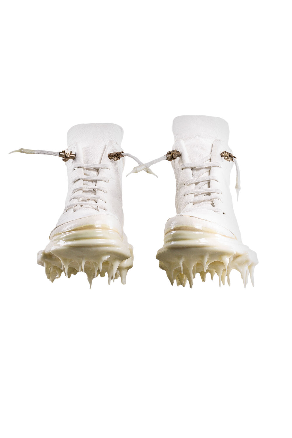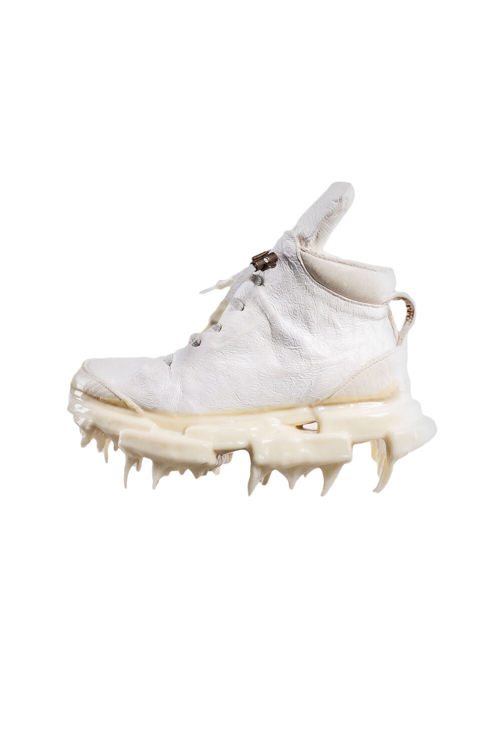 A defining feature of this sneaker is its innovative drip rubber sole, a signature Carol Christian Poell detail that merges functionality with art. This unique sole not only provides traction but also adds a distinctive visual element to the shoe, with its icicle-like formations that appear to "drip" from the bottom.