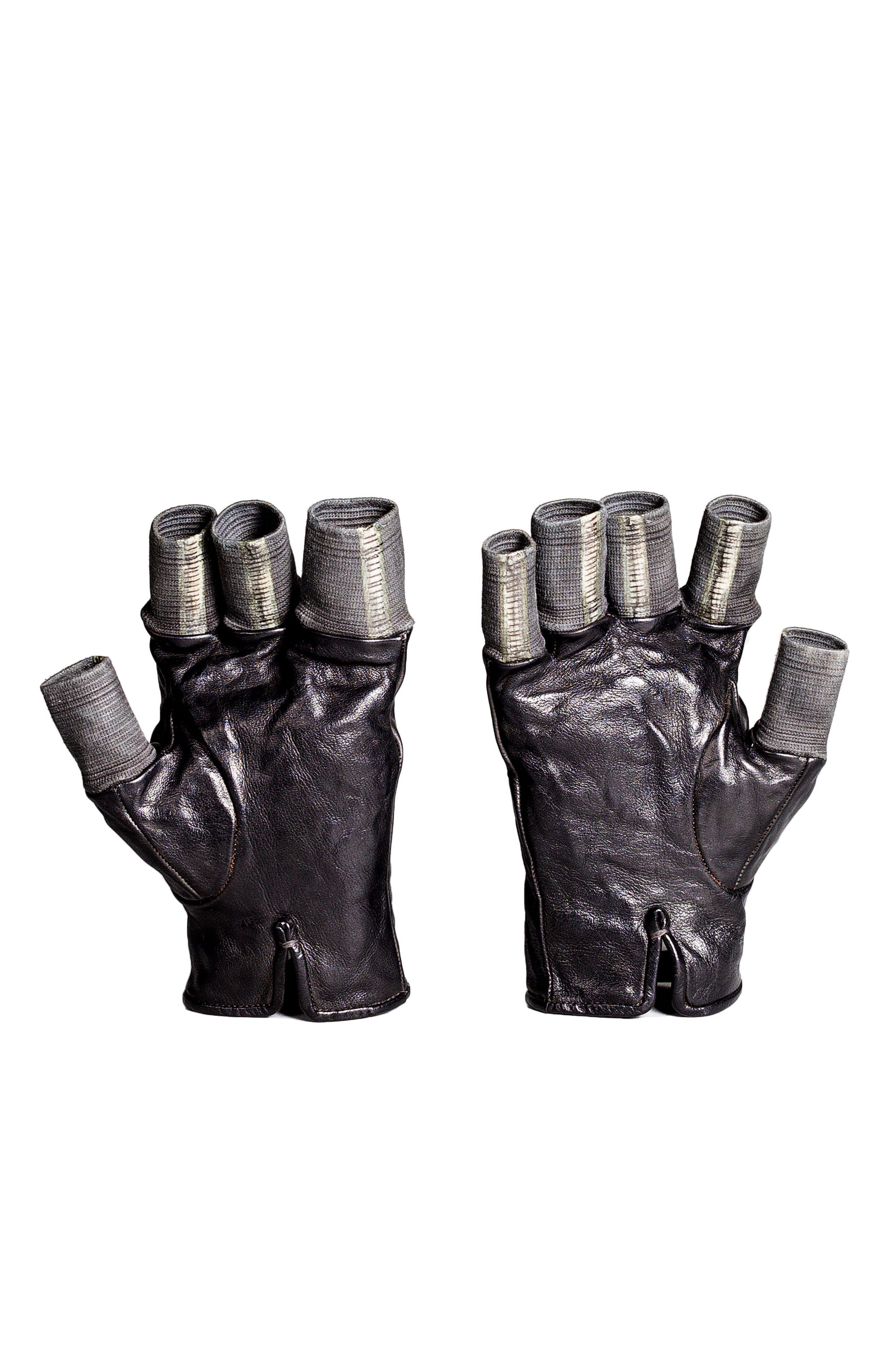 Crafted with the innovative ROOMS-PTC material, the Disparate Fingercuff Gloves in Black (Colour: 10) hue represent a bold step forward in the realm of avant-garde accessories.