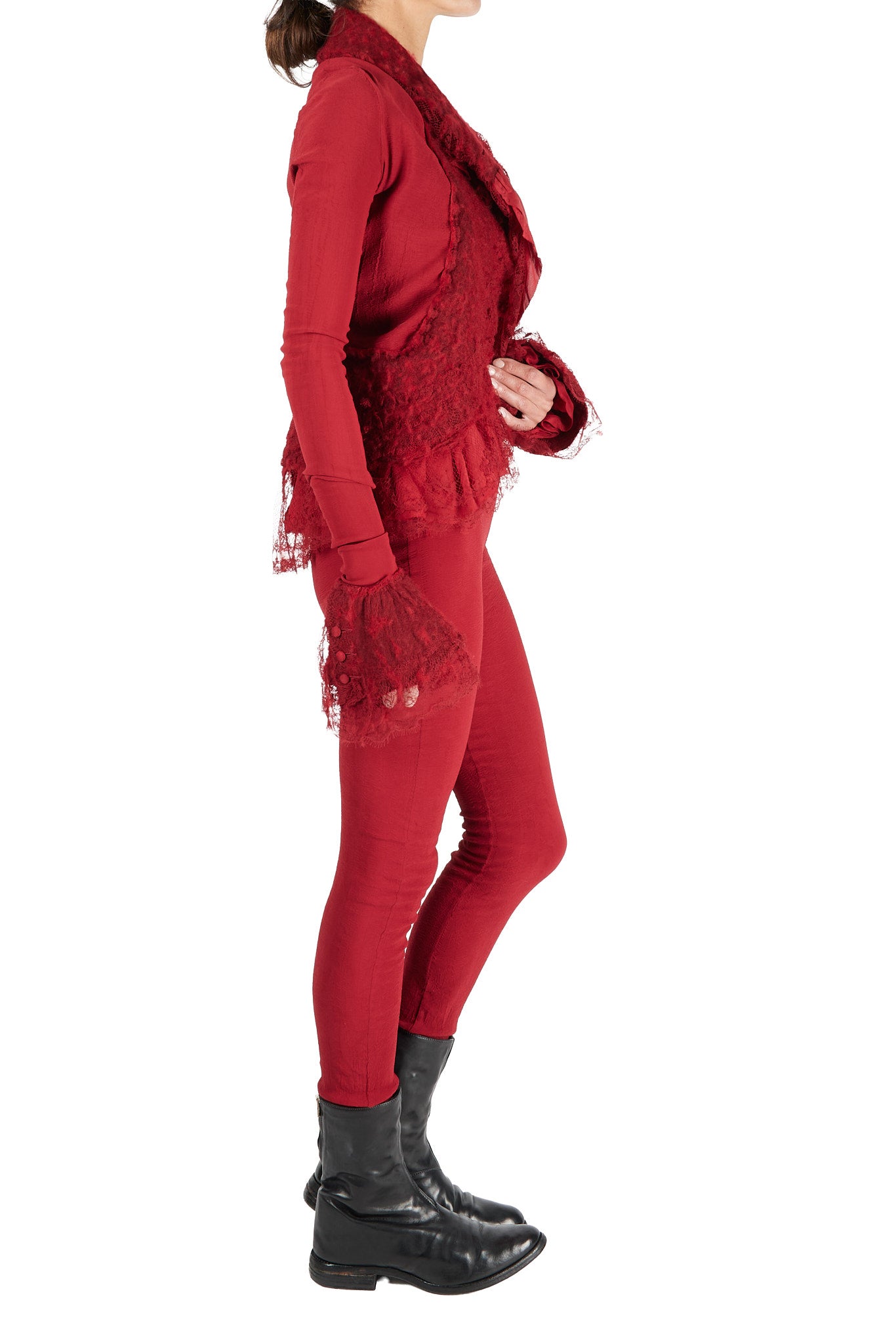 Marc Le Bihan's red jacket exemplifies the designer's bold approach to form and color through innovative construction and artistic vision. This statement piece offers dramatic chromatic presence with sophisticated complexity, creating a contemporary silhouette with distinctive architectural elements. The innovative proportions and meticulous details throughout reflect the designer's experimental sensibility, while the vivid red palette introduces emotional intensity with commanding visual impact. This jacket embodies Marc Le Bihan's signature aesthetic—where traditional tailoring is reimagined through conceptual exploration and technical mastery, creating pieces with intellectual substance and emotional resonance that balance artistic expression with modern sophistication for distinctive outerwear with transformative presence.