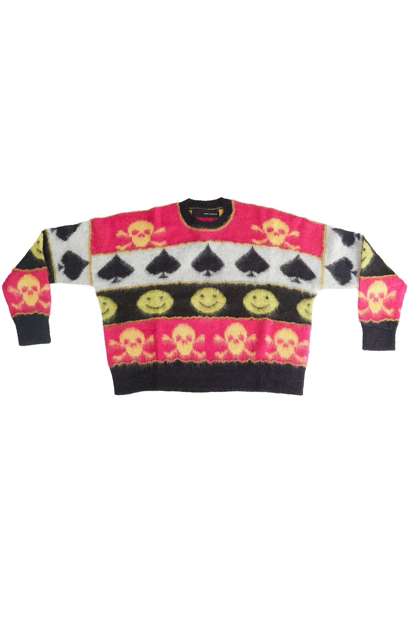 Isabel Benenato's Jacquard Smiles Jumper represents the designer's playful exploration of pattern and color within her typically restrained aesthetic. Crafted from a luxurious blend of mohair, nylon, and alpaca, this jumper features a whimsical smile pattern rendered in multiple colors that introduces a subtle element of joy and expression. The premium fiber composition balances mohair's distinctive texture with alpaca's warmth and nylon's structural support, creating a garment with exceptional tactile quality and visual interest. This piece showcases Benenato's versatility as a designer—her ability to incorporate expressive, colorful elements while maintaining the refined sensibility and material excellence that defines her brand.