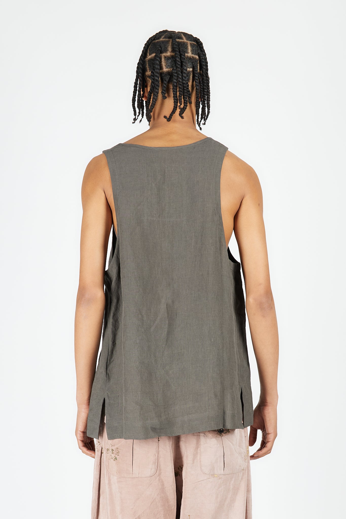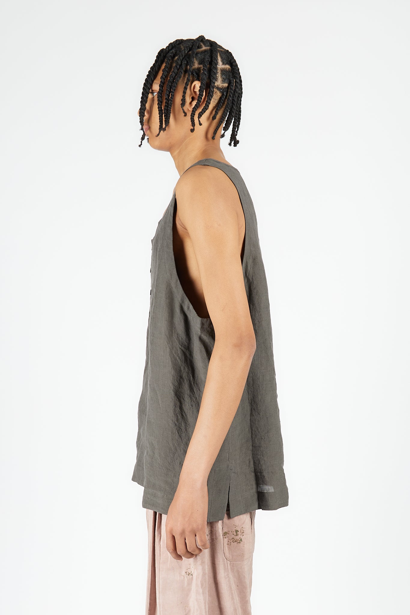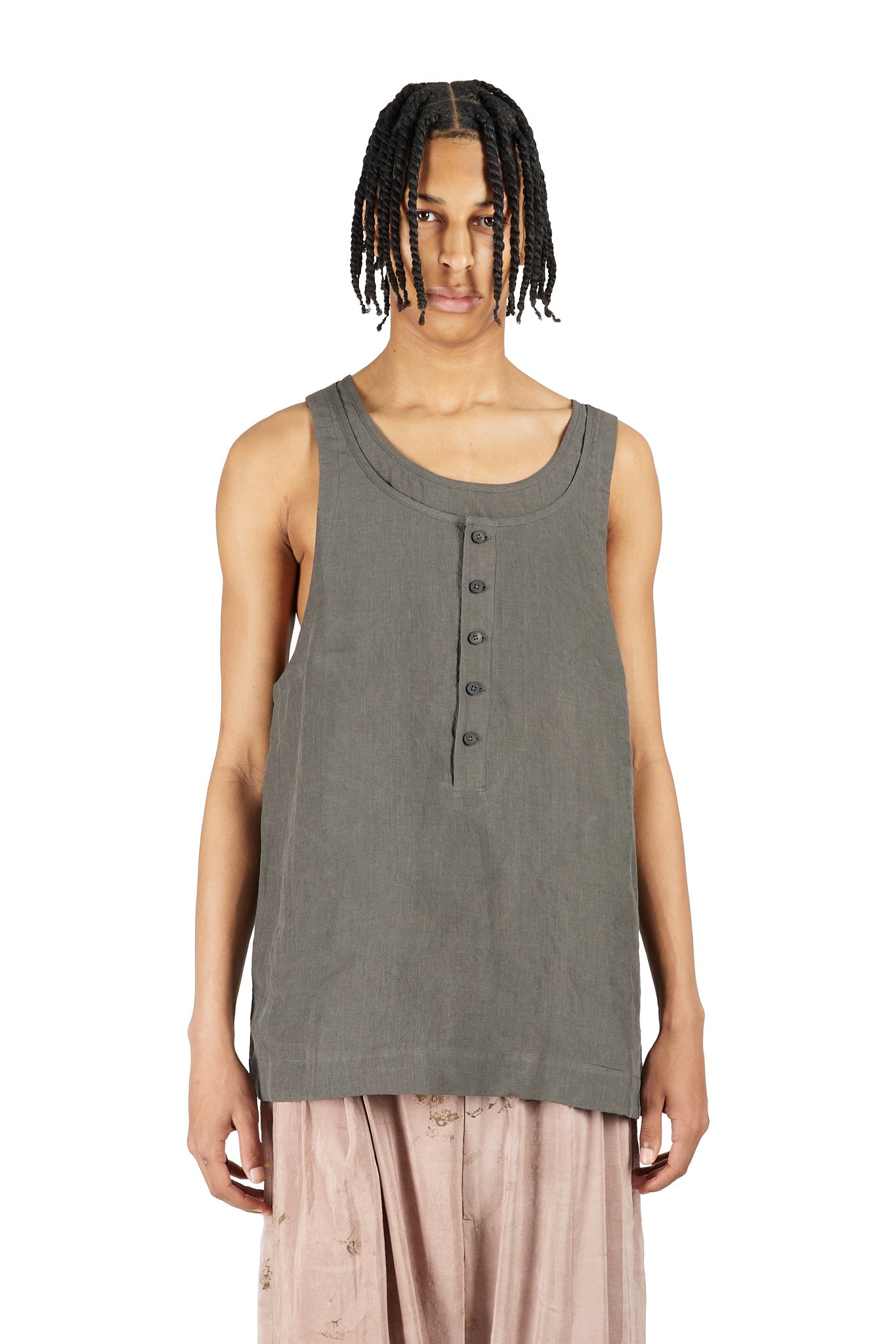 Ziggy Chen's Layered Henley-Neck Tank Top represents the designer's sophisticated approach to layering and textural complexity. Crafted entirely from premium linen, this piece employs a multi-layered construction that creates visual depth and dimensional interest.