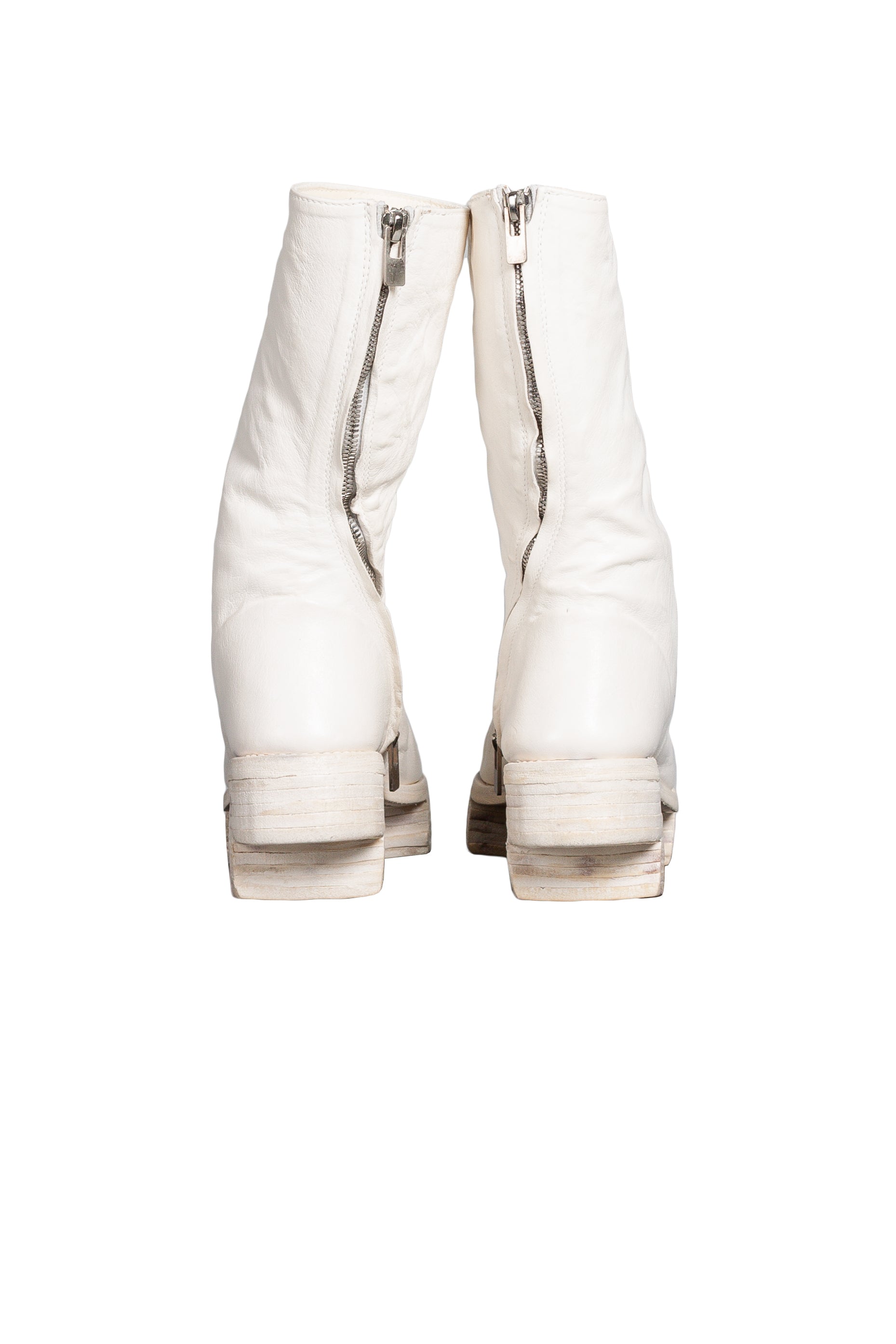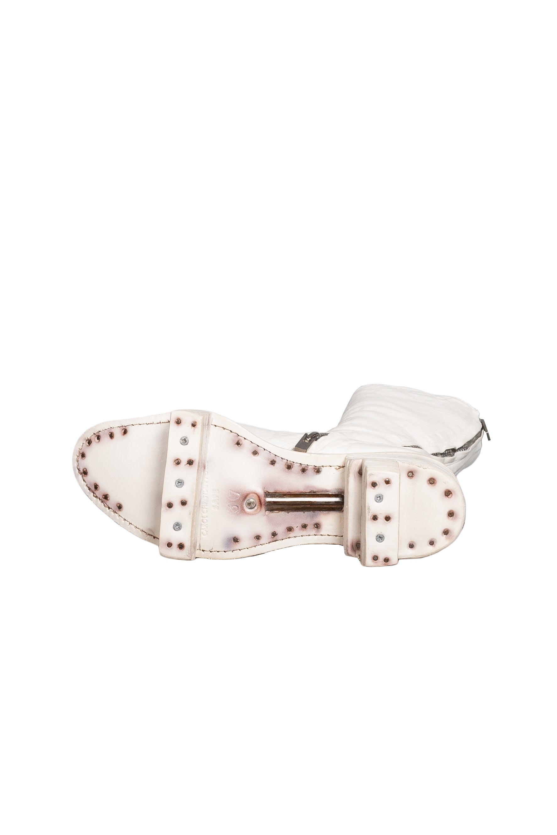 The AF/0878 model Object Dyed Geta boot embodies Carol Christian Poell's vision of merging the avant-garde with artisanal craftsmanship. This shoe is crafted from ROOMS-PTC in 100% kangaroo leather, in white (Colour: 01).