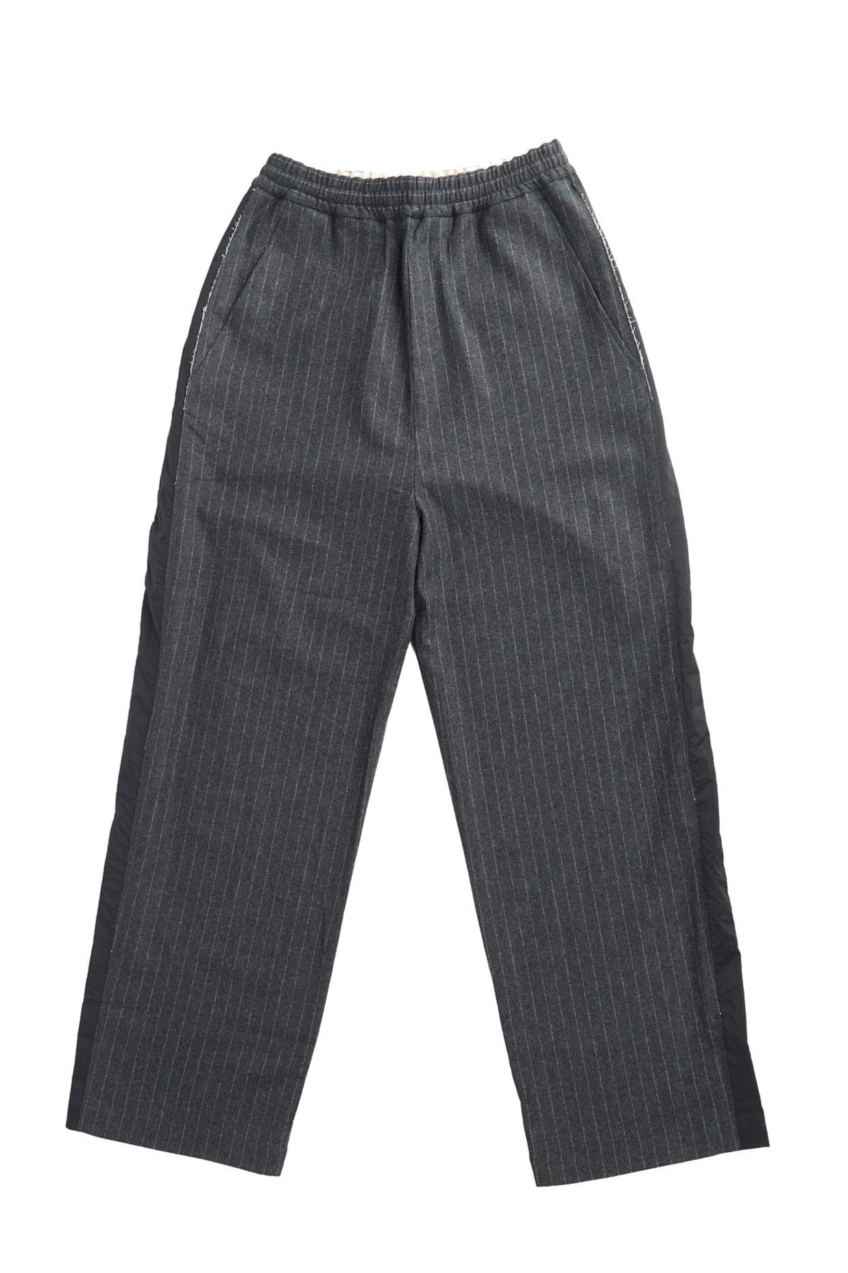 Ref // Pinstripe Wide Wool Trousers with Raw Cut Seam