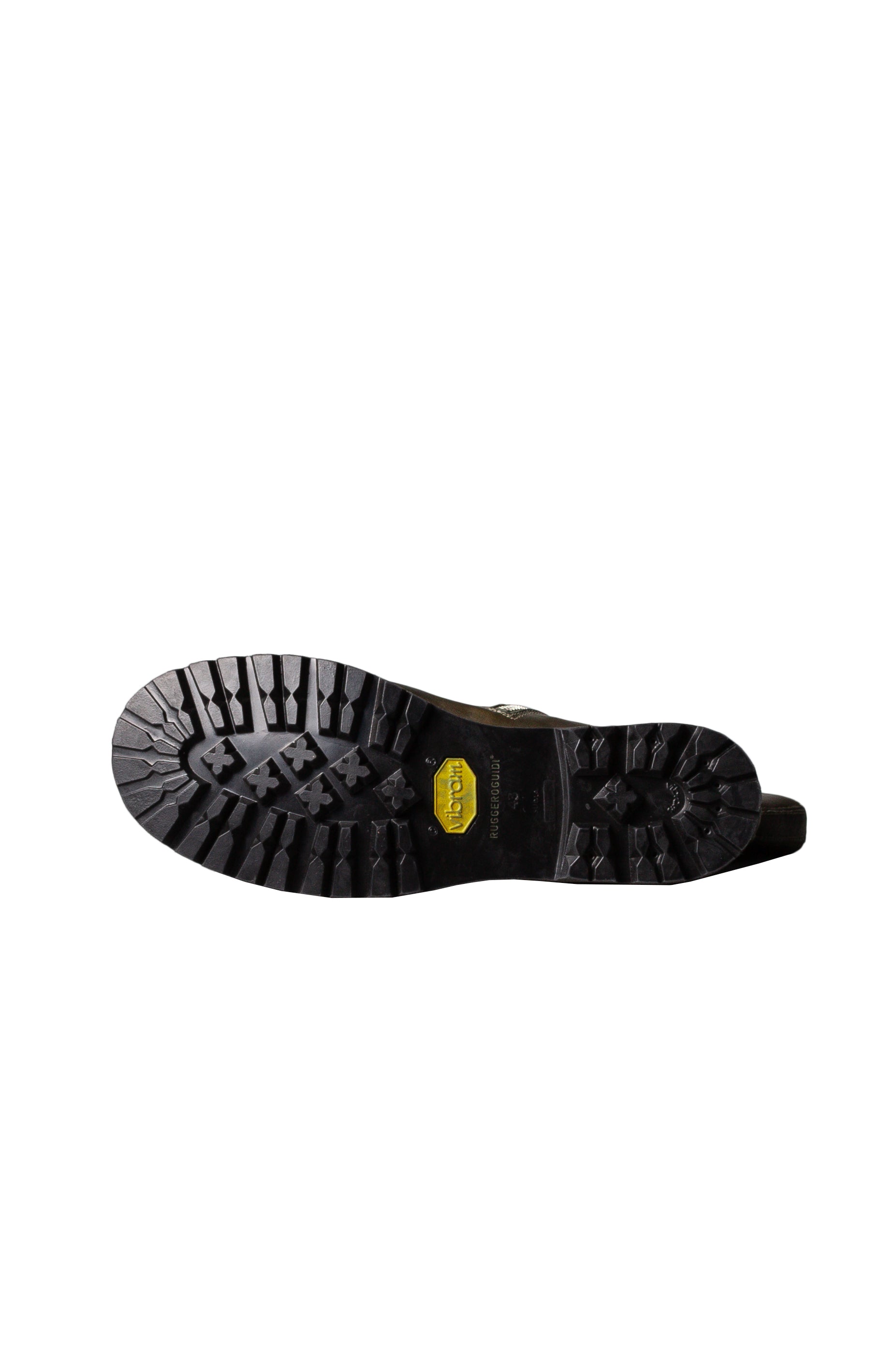The GUIDI Side Zip Low Boot, meticulously crafted in Italy, exemplifies the brand's dedication to blending timeless craftsmanship with contemporary design. Made from the finest full-grain horse leather, this boot features a distinctive military green hue, a testament to GUIDI's object-dyeing expertise. The boot's design is based on GUIDI's signature one-piece back zip boot but with a wider side zipper for a comfortable fit. The tough and voluminous Vibram tank sole offers durability and a unique aesthetic, complemented by the elegant, texture of the horse leather. This low boot, embodying GUIDI's innovative approach to traditional shoemaking, is a perfect blend of functional robustness and avant-garde style.