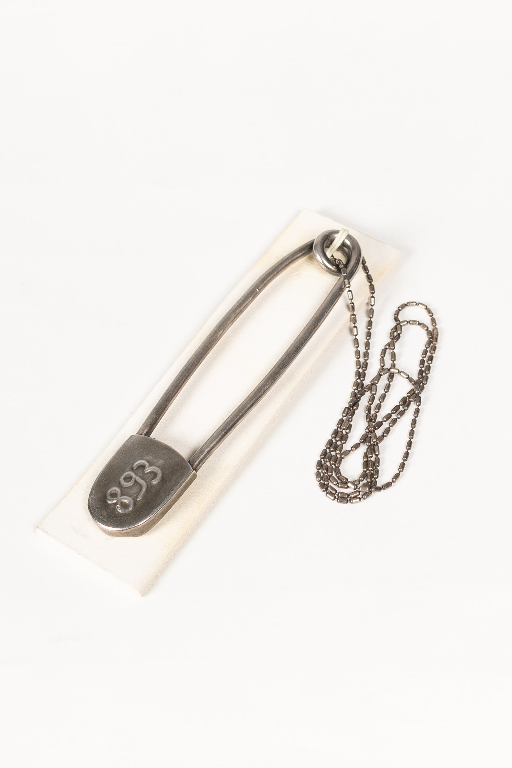 The Silver Identity Pin Chain stands as a testament to uniqueness and personal expression, meticulously crafted from sterling silver. This striking piece features an individually numbered body bag pin, serving as a bold centerpiece for the necklace. Each number imbues the piece with a sense of individual identity, making it not just a piece of jewelry but a personal emblem.
