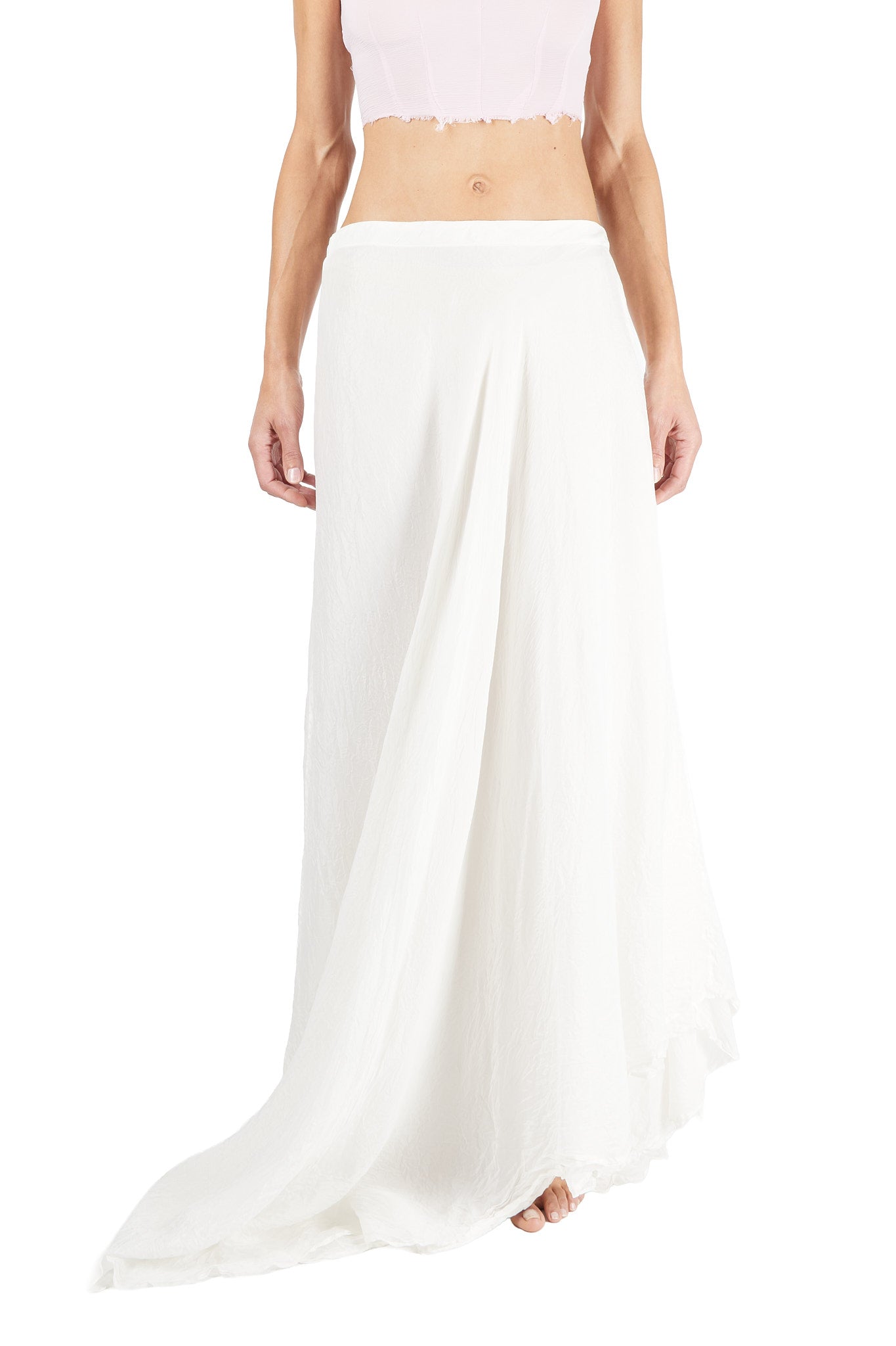 Marc Le Bihan's white skirt exemplifies the designer's poetic approach to contemporary silhouettes through ethereal materials and innovative construction. This piece offers luminous presence with delicate movement, creating a modern expression of femininity with architectural interest. The thoughtful proportions and refined detailing throughout reflect the designer's experimental sensibility, while the pristine white palette emphasizes both purity of form and textural subtlety. This skirt embodies Marc Le Bihan's signature aesthetic—where traditional garment construction is reimagined through conceptual exploration, creating pieces with intellectual depth and emotional resonance that balance artistic expression with sophisticated wearability.